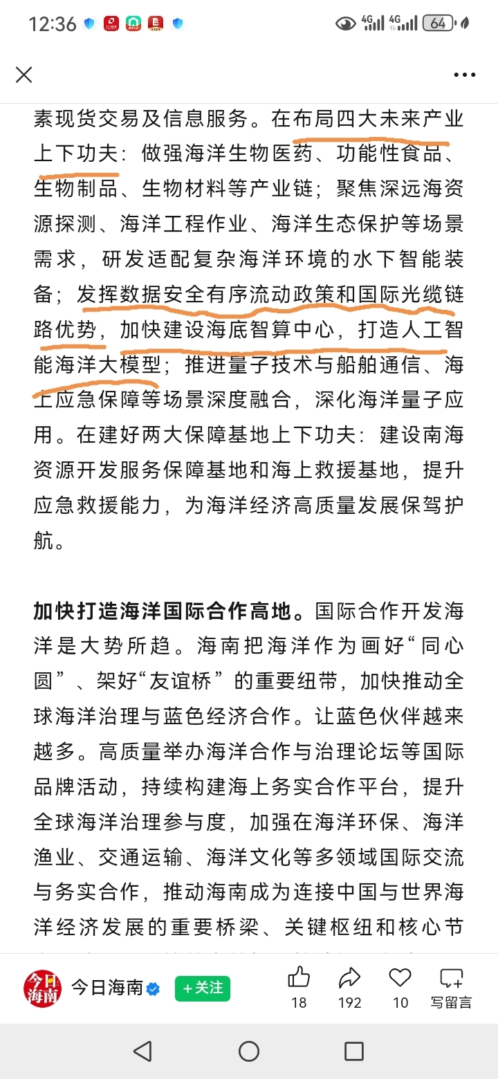 $海兰信(SZ300065)$ 《求是》杂志2026年第6期刊发海南省委书记冯飞署名文章《向海洋要生产力和增长点》