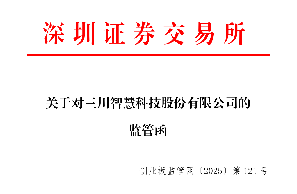 据深交所网站,10月16日,三川智慧科技股份有限公司(证券简称:三川智慧,深市代码:300066)被出具监管函。