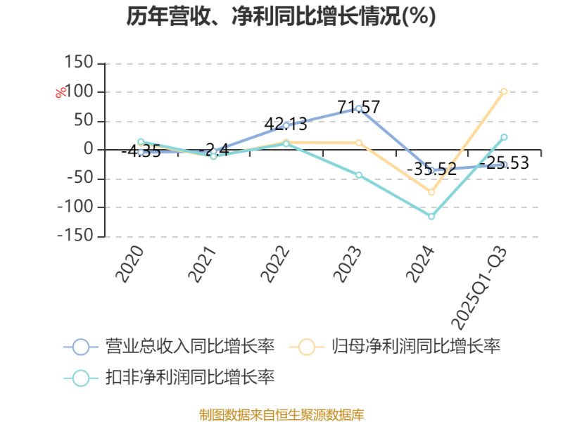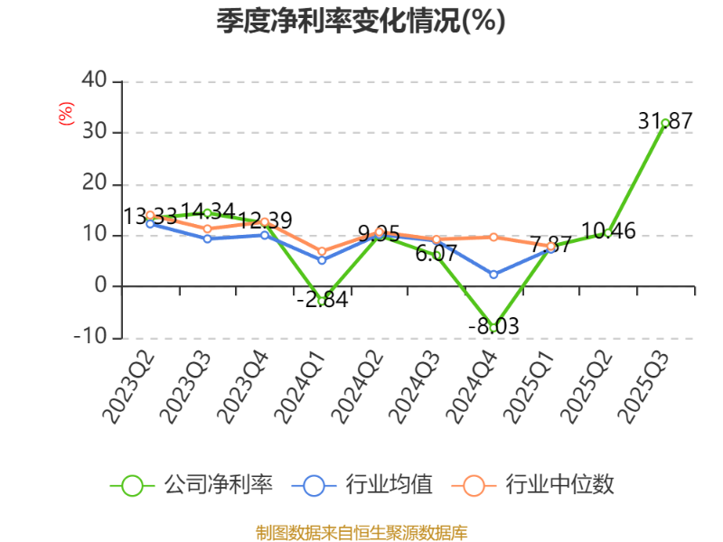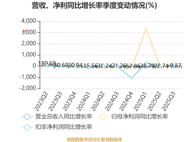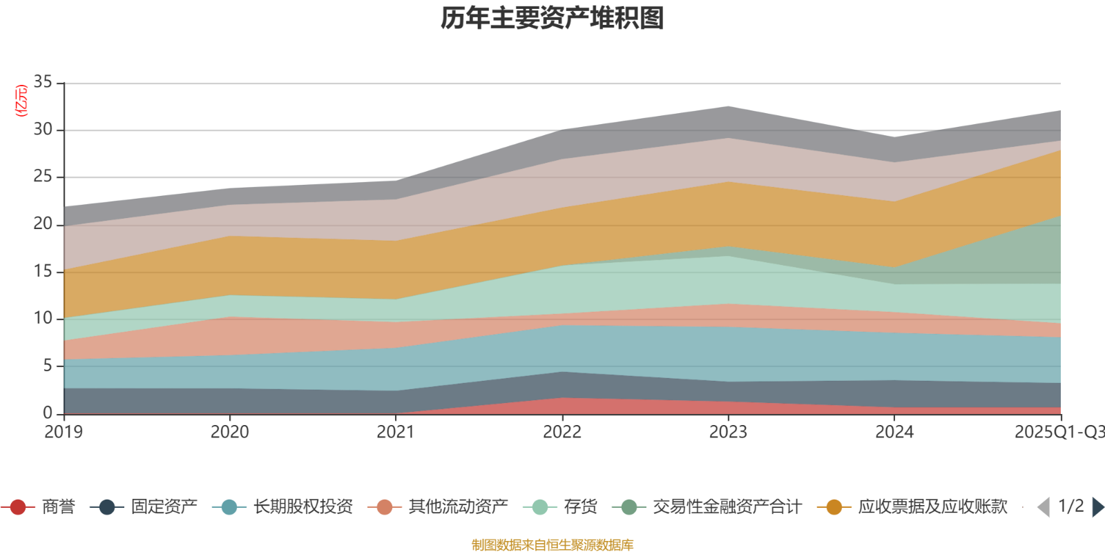 资产重大变化方面,截至2025年三季度末,公司交易性金融资产合计较上年末增加303.1%,占公司总资产比重上升16.32个百分点;货币资金较上年末减少75.63%,占公司总资产比重下降11.04个百分点;存货较上年末增加42.2%,占公司总资产比重上升2.98个百分点;其他流动资产较上年末减少32.71%,占公司总资产比重下降2.9个百分点。