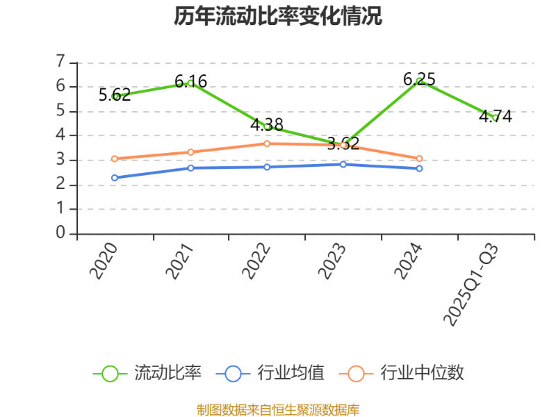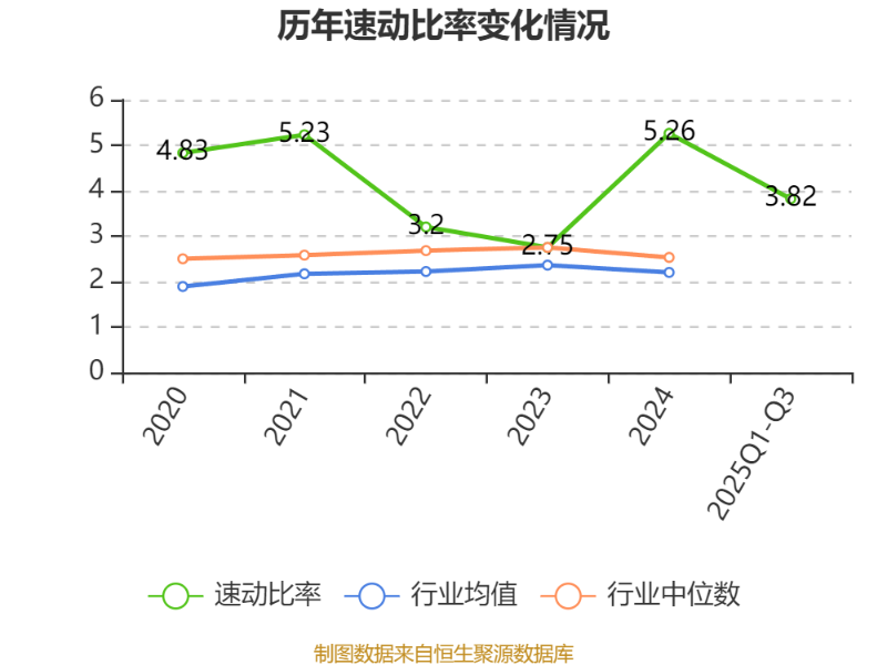 2025年前三季度,公司流动比率为4.74,速动比率为3.82。