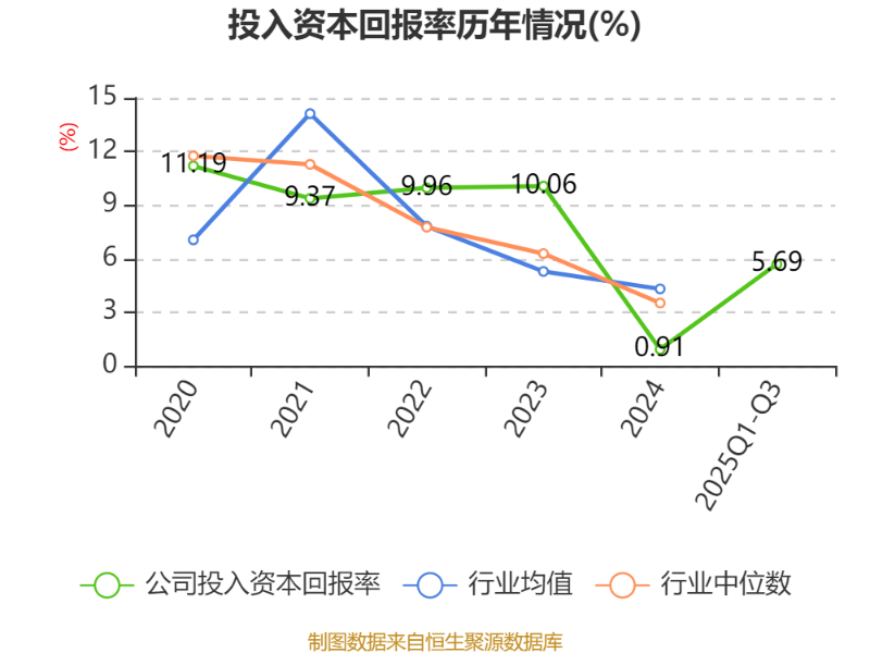 盈利能力方面, 2025年前三季度公司加权平均净资产收益率为5.61%,同比上升2.74个百分点。公司2025年前三季度投入资本回报率为5.69%,较上年同期上升4.29个百分点。