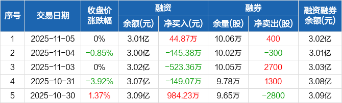 三川智慧:融资净买入44.87万元,融资余额3.01亿元(11-05)