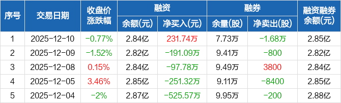 三川智慧:融资净买入231.74万元,融资余额2.84亿元(12-10)