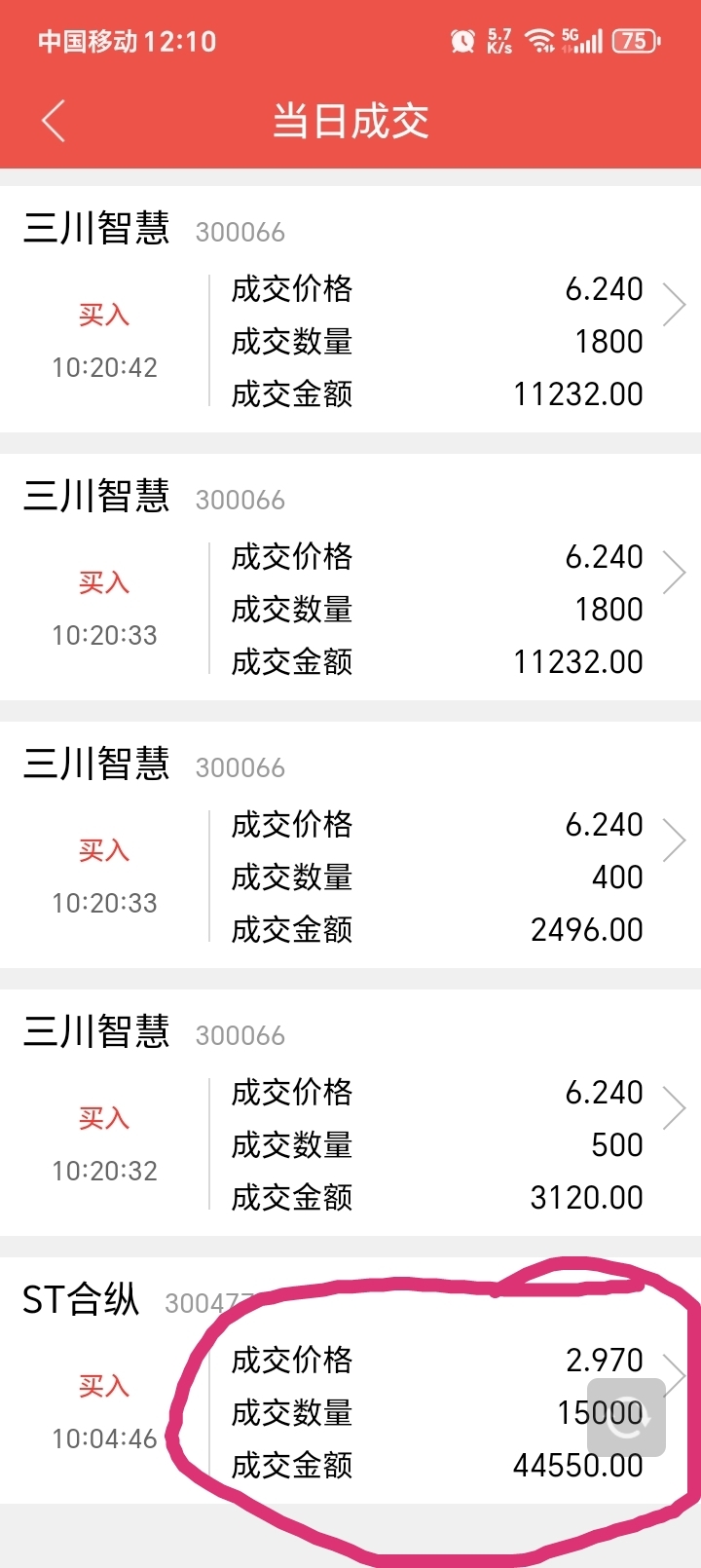 $三川智慧(SZ300066)$ $ST合纵(SZ300477)$ 今天终于买进去三川智慧了,可是一买进就觉得它始终还是垃圾的货色。