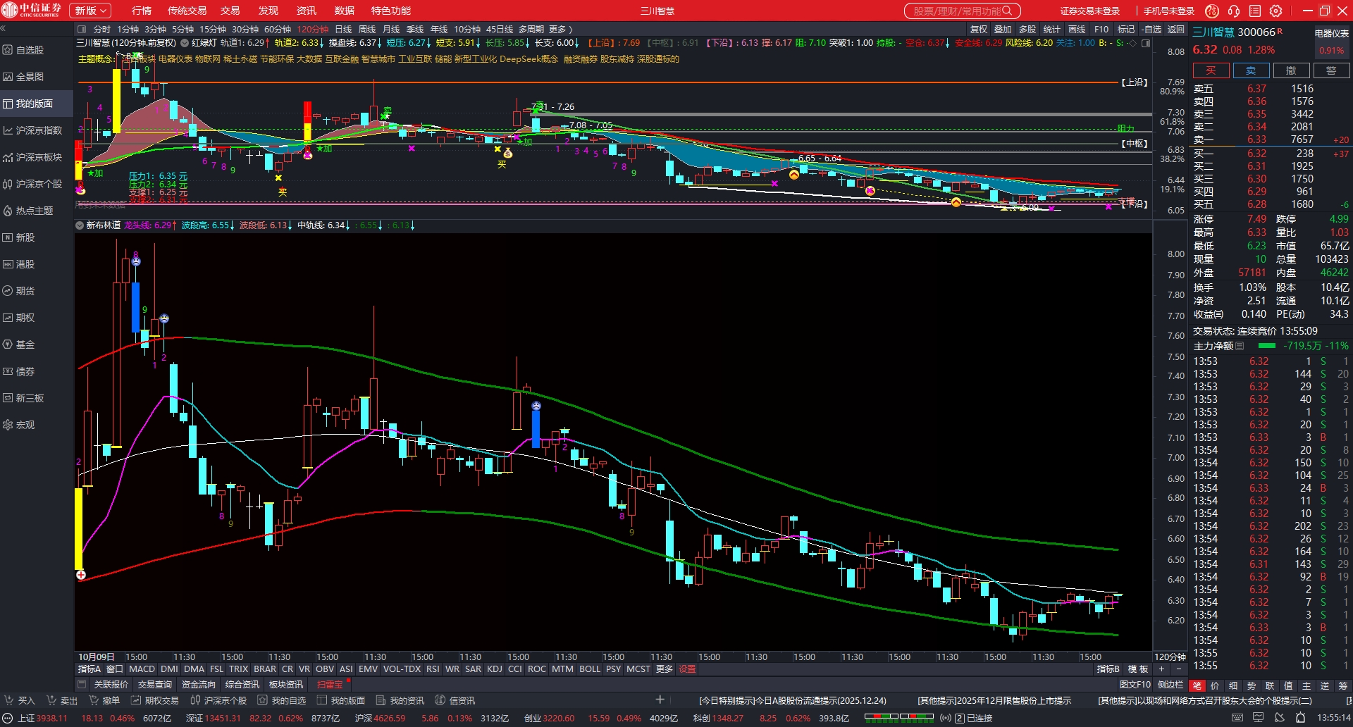 $三川智慧(SZ300066)$ 被上轨线压着