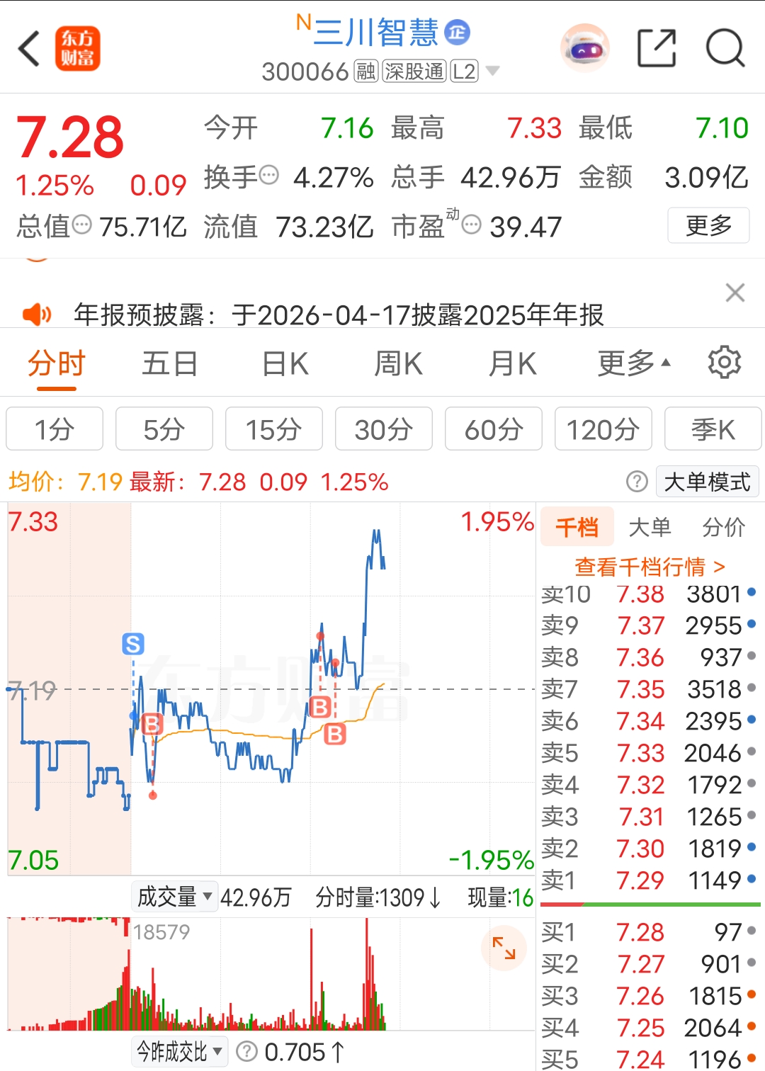 $三川智慧(SZ300066)$ 终于准备解放30号的筹码了?量还是少了。现在的三川比较跟随稀土板块的波动。