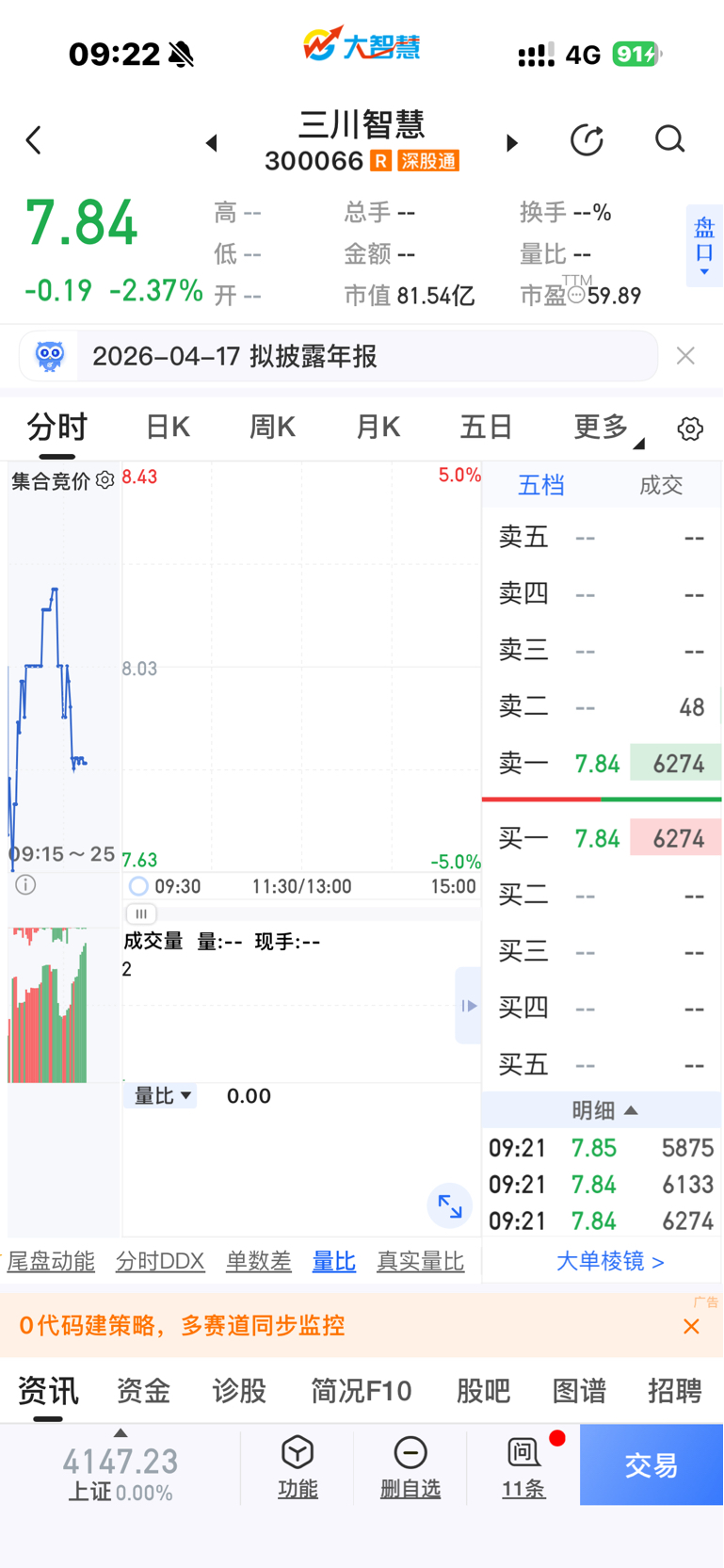 $三川智慧(SZ300066)$ 感谢自己昨天8.46果断卖出。了解一个股票的股性太重要啦!今天可以不看你了,周三再买你