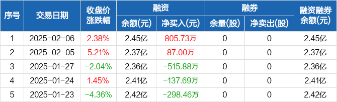 安诺其:融资净买入805.73万元,融资余额2.45亿元(02-06)
