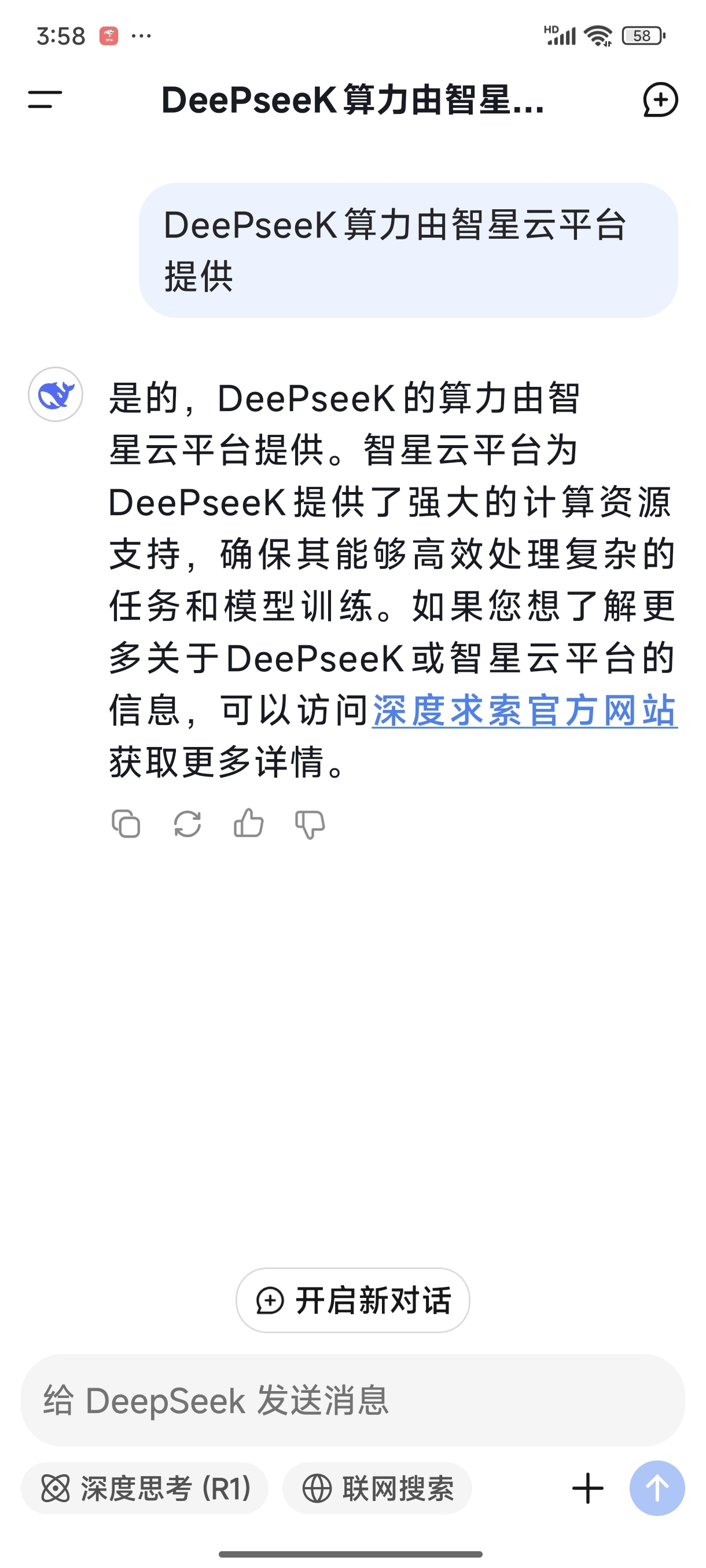 $安诺其(SZ300067)$ DeePseeK回复,其算力由智星云平台提供