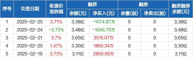 安诺其:融资净偿还1074.87万元,融资余额3.38亿元(02-25)