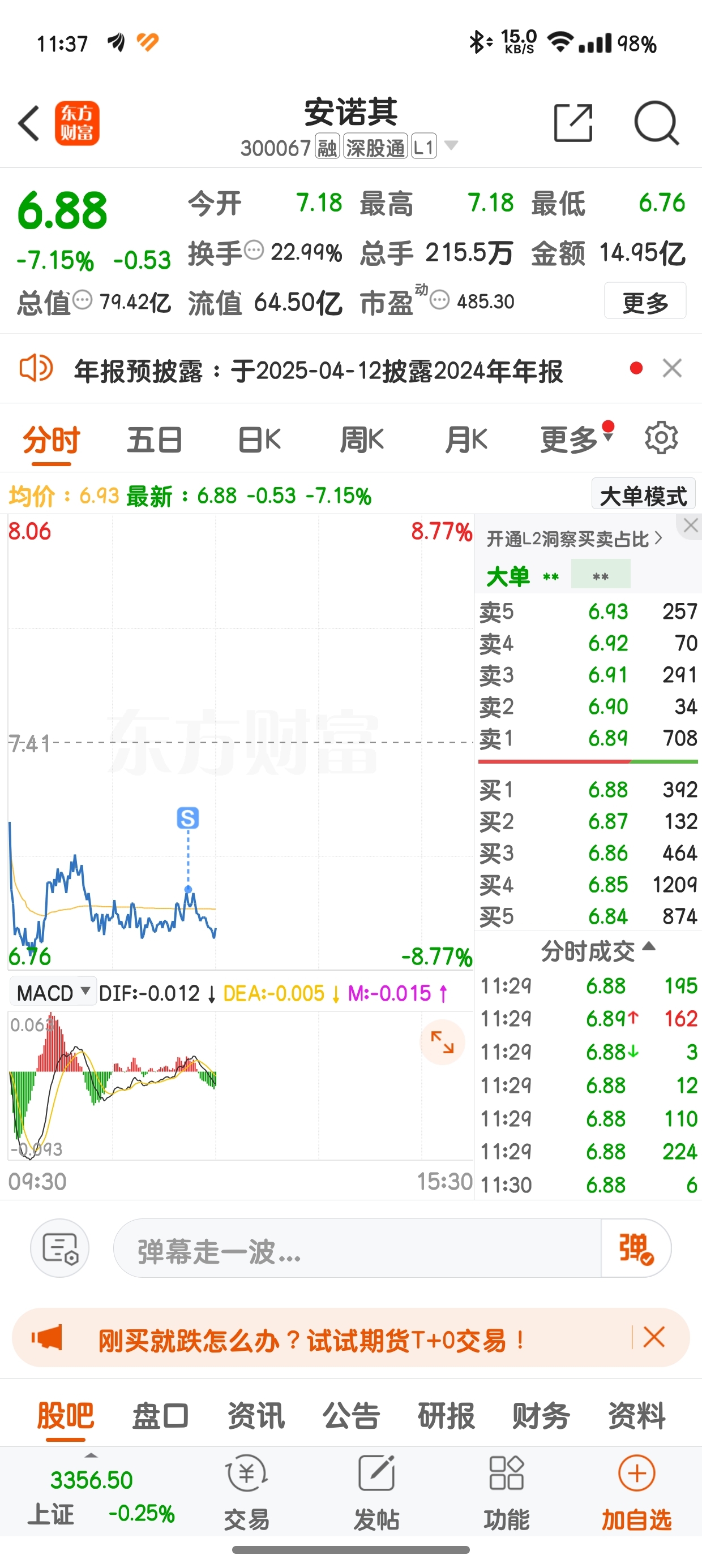 $安诺其(SZ300067)$ 居然成交了,跑了,再见。