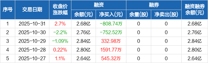 安诺其:融资净偿还808.74万元,融资余额2.68亿元(10-31)