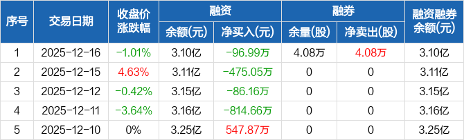 安诺其:连续4日融资净偿还累计1472.86万元(12-16)