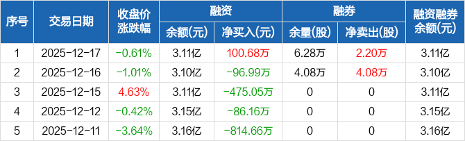 安诺其:融资净买入100.68万元,融资余额3.11亿元(12-17)