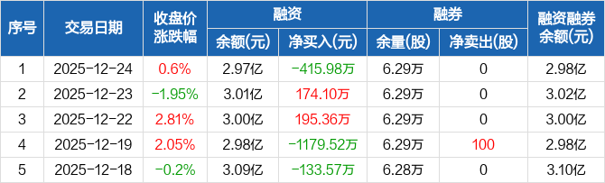 安诺其:融资净偿还415.98万元,融资余额2.97亿元(12-24)