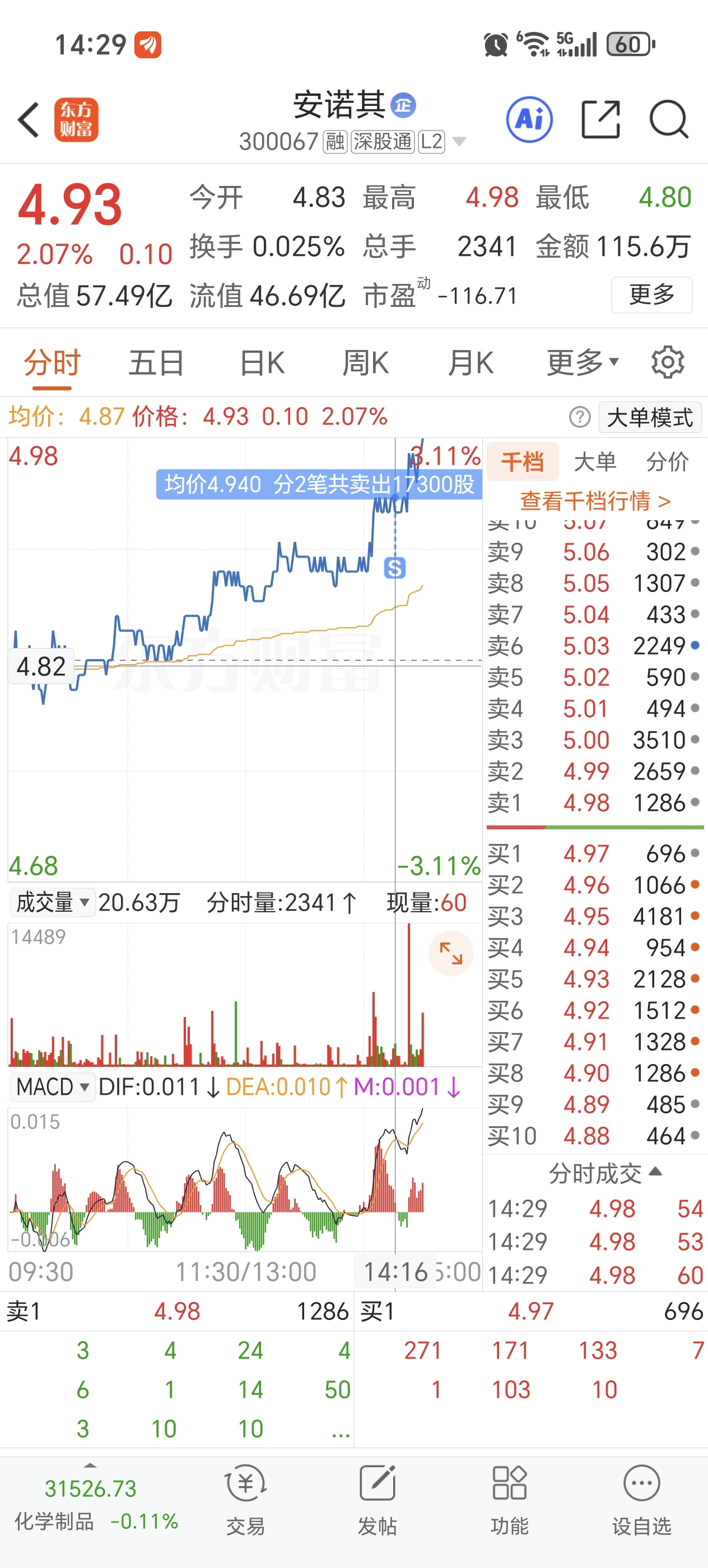 $安诺其(SZ300067)$ 卖飞了