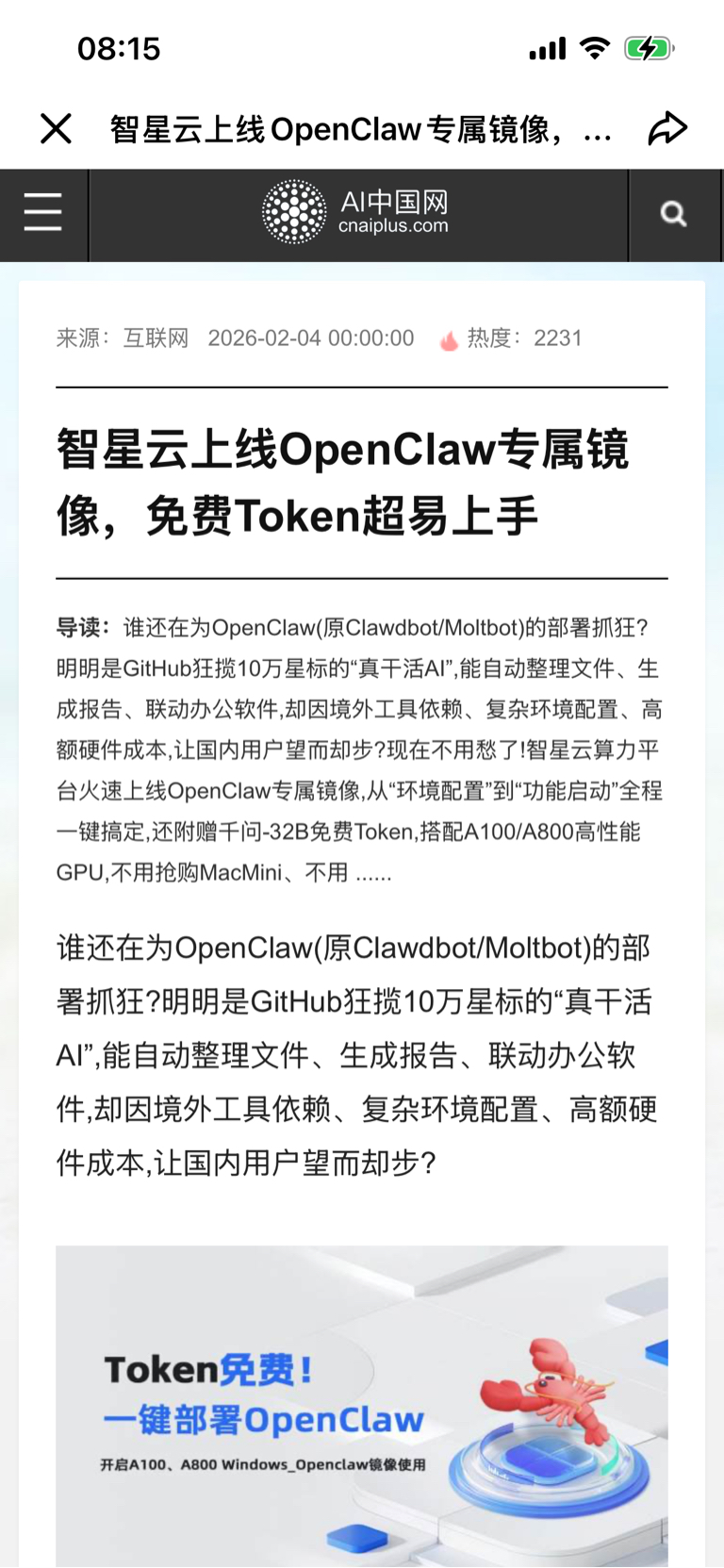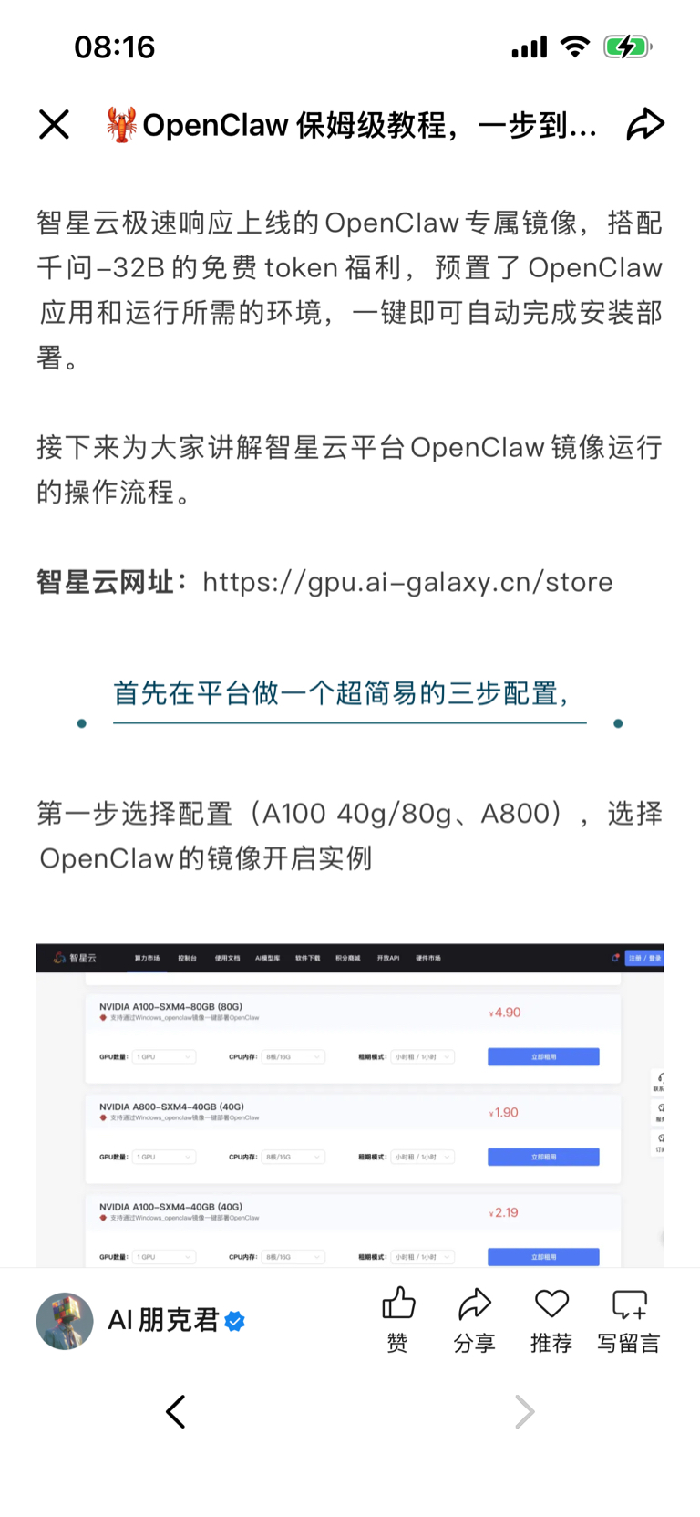 智星云好像是在为OpenClaw服务