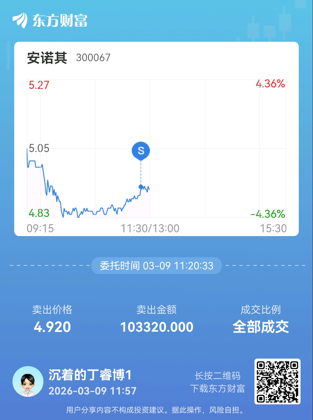 温馨提示: 1.根据《证券法》规定,禁止编造、传播虚假信息或者误导性信息,扰乱证券市场;2.用户在本社区发表的所有资料、言论等仅代表个人观点,与本网站立场无关,不对您构成任何投资建议。用户应基于自己的独立判断,自行决定证券投资并承担相应风险。《东方财富社区管理规定》
