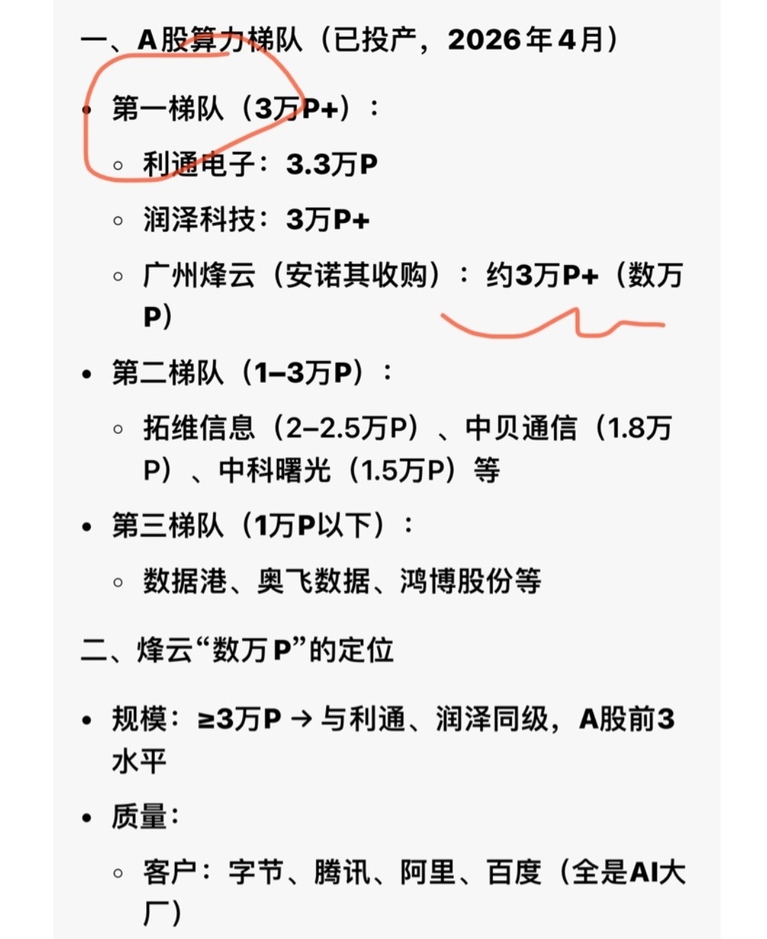 而$安诺其(SZ300067)$ 即将全资收购的广州烽云,正以约3万P的算力规模(“数万P”) 冲入这场竞赛的第一阵营。