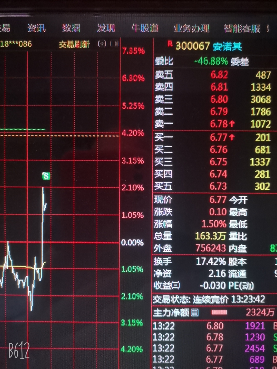 $安诺其(SZ300067)$ 挂的6.85跑了,破新低在接,赚一顿饭