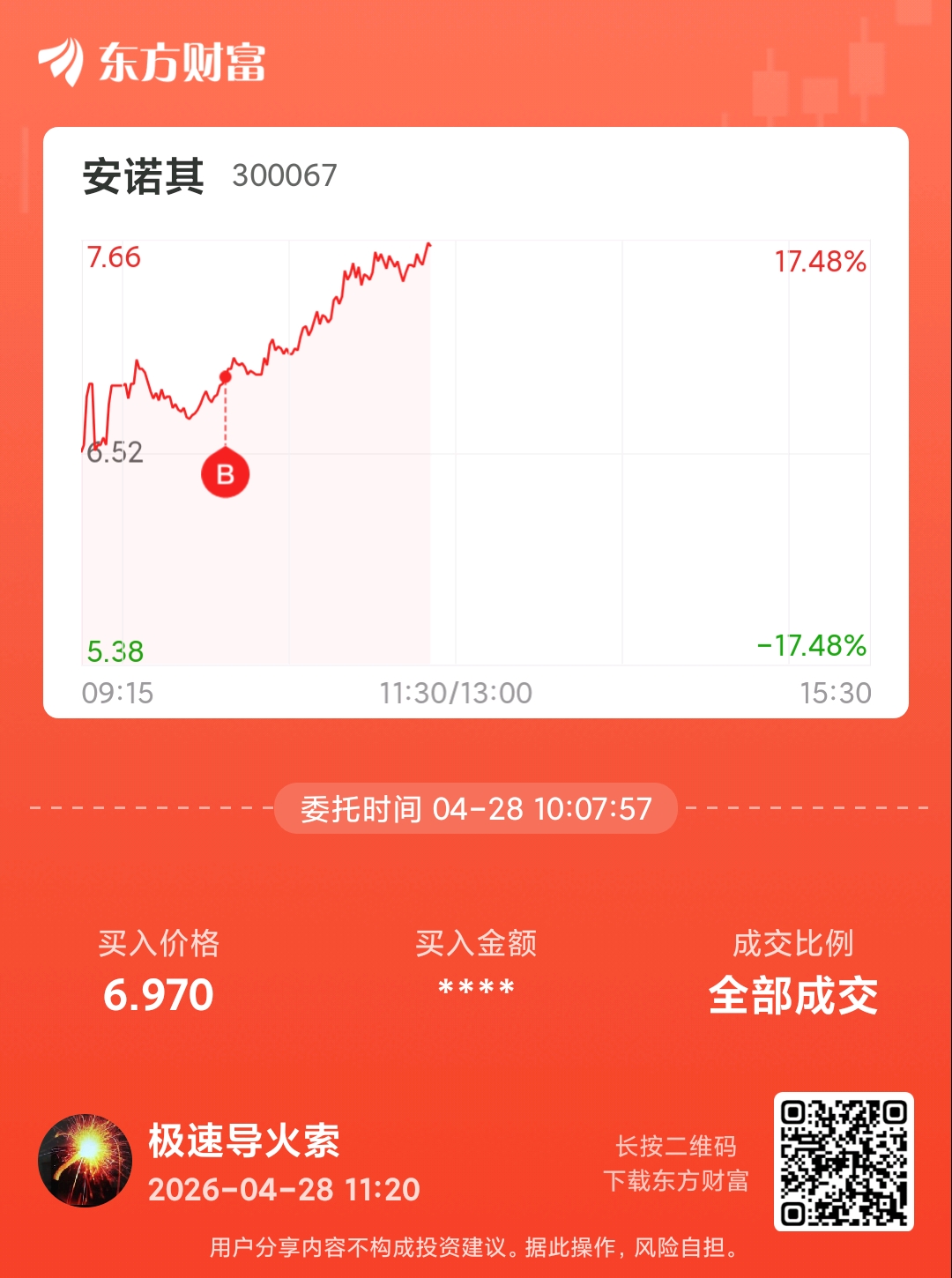 温馨提示: 1.根据《证券法》规定,禁止编造、传播虚假信息或者误导性信息,扰乱证券市场;2.用户在本社区发表的所有资料、言论等仅代表个人观点,与本网站立场无关,不对您构成任何投资建议。用户应基于自己的独立判断,自行决定证券投资并承担相应风险。《东方财富社区管理规定》