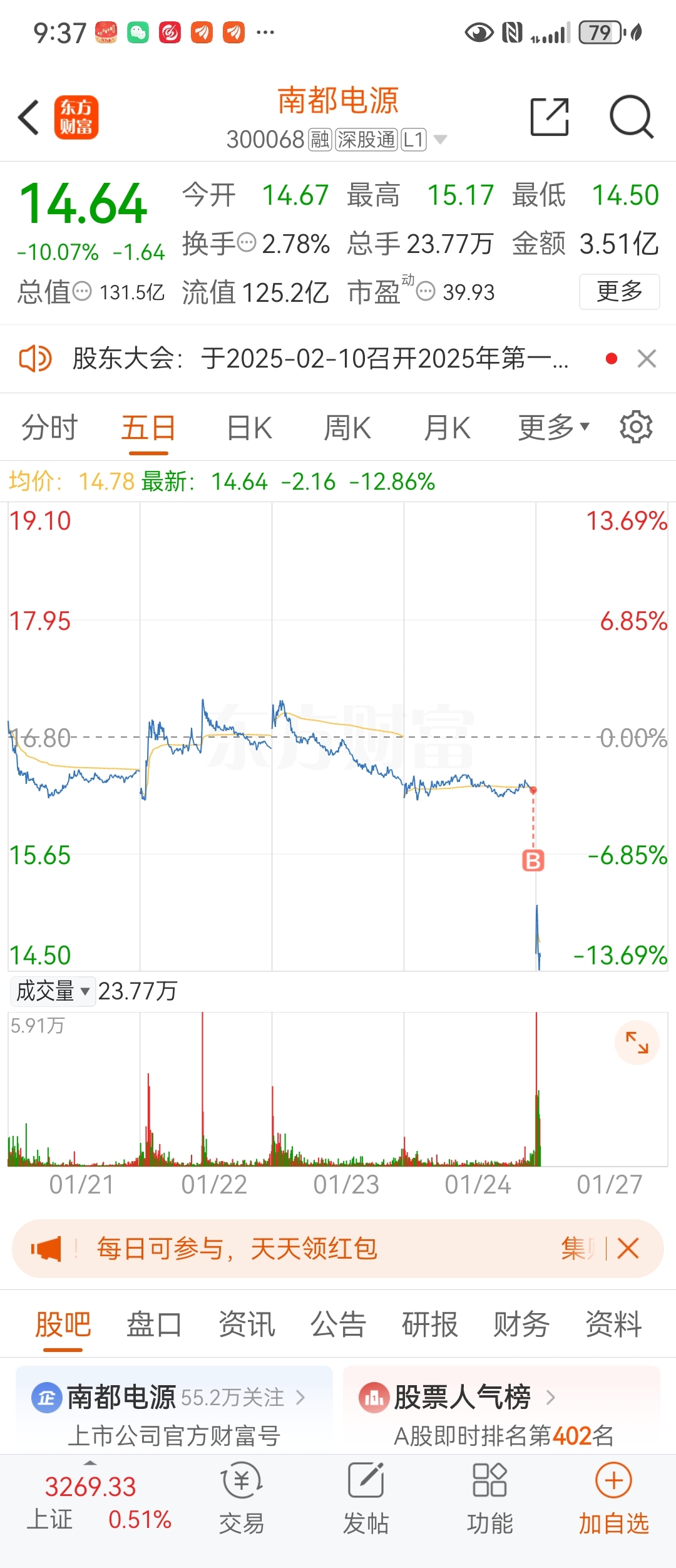 温馨提示: 1.根据《证券法》规定,禁止编造、传播虚假信息或者误导性信息,扰乱证券市场;2.用户在本社区发表的所有资料、言论等仅代表个人观点,与本网站立场无关,不对您构成任何投资建议。用户应基于自己的独立判断,自行决定证券投资并承担相应风险。《东方财富社区管理规定》
