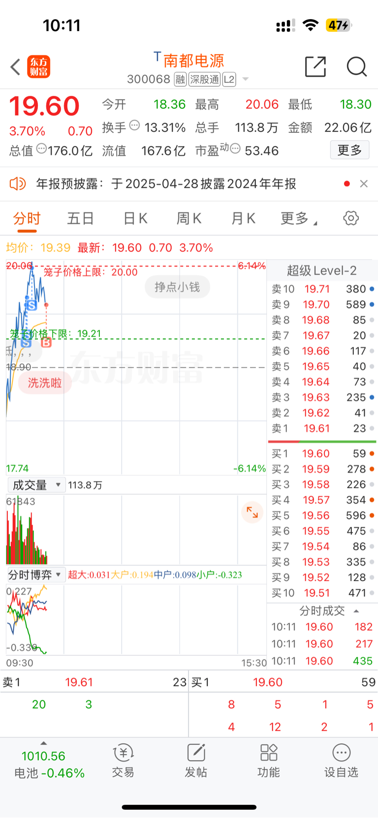 $南都电源(SZ300068)$ 卖飞了,又接回来了,希望别大跳水啊!
