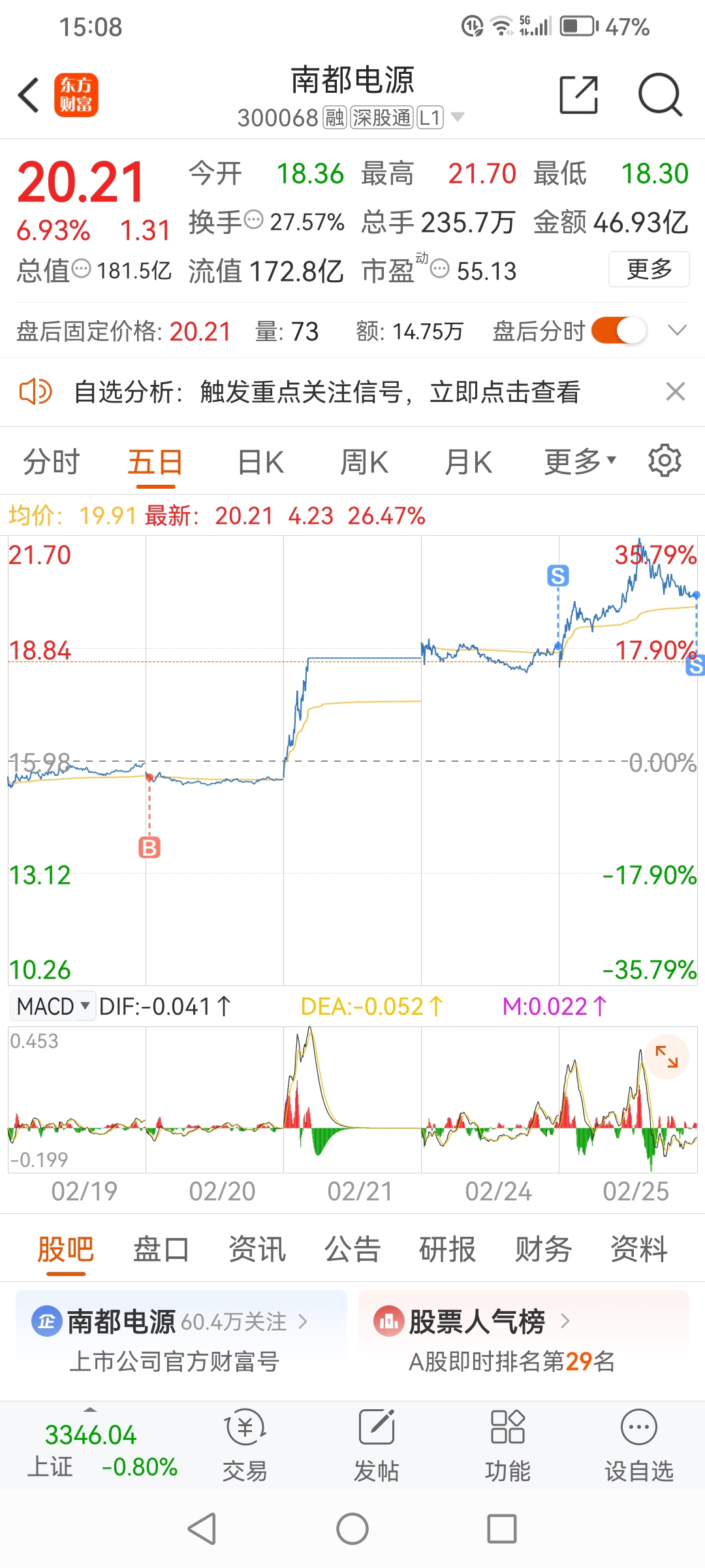 续葫芦娃后,南都也回本了,21.8上车,经过三个多月的高买低卖或者低买高卖,昨天