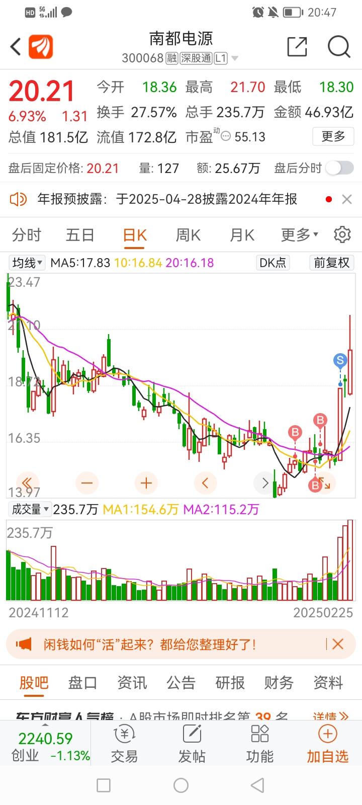 $南都电源(SZ300068)$ 又涨那么高,之前乱买三次,一下子涨停就卖飞了