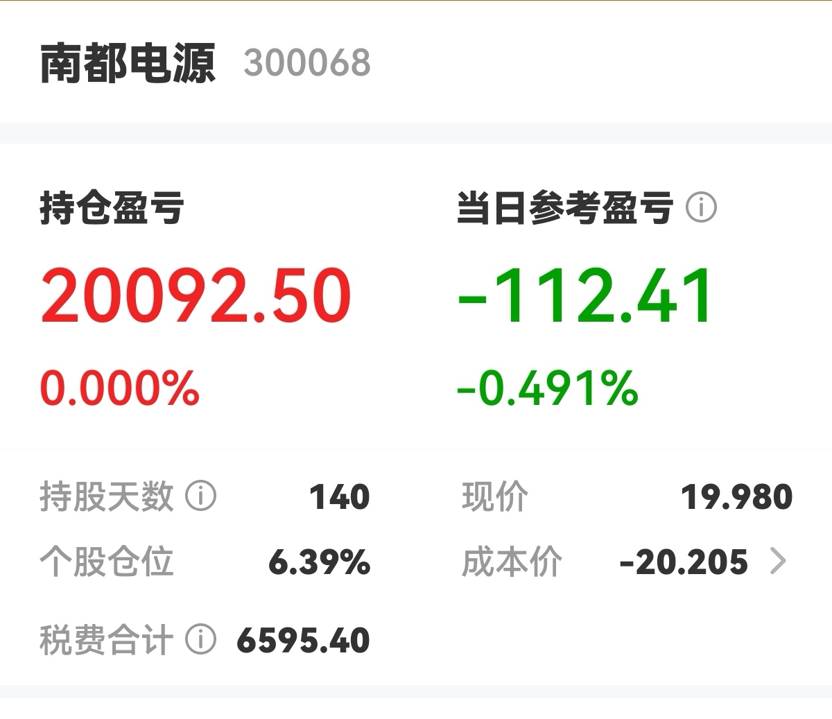 $南都电源(SZ300068)$ 最后留500股,持仓140天,上缴税费6000多元,不断做T,终于胜利大逃亡,有机会回到本轮起飞点15.55本人还是会来的。
