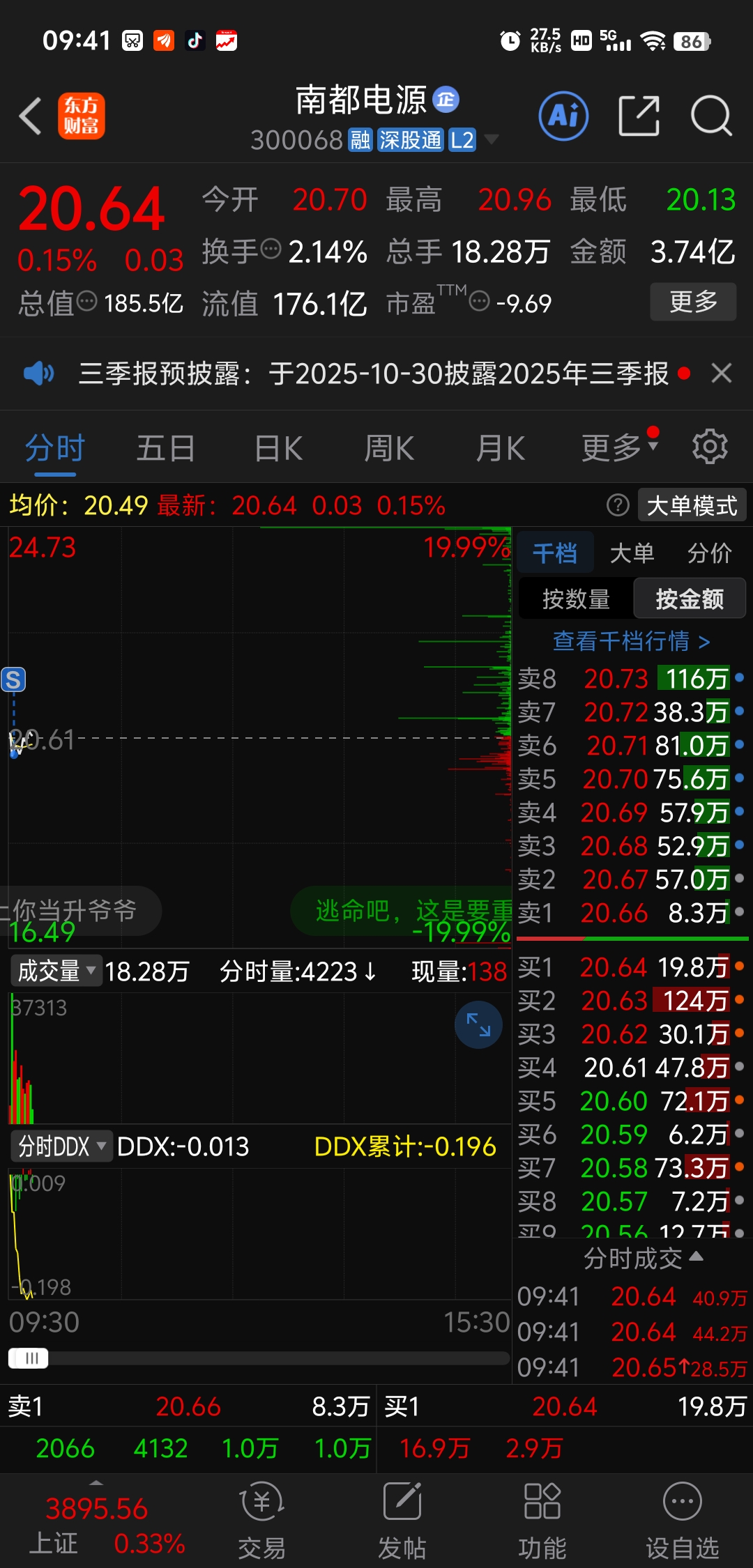 $南都电源(SZ300068)$ 早上亏钱走了,留下的兄弟发财。