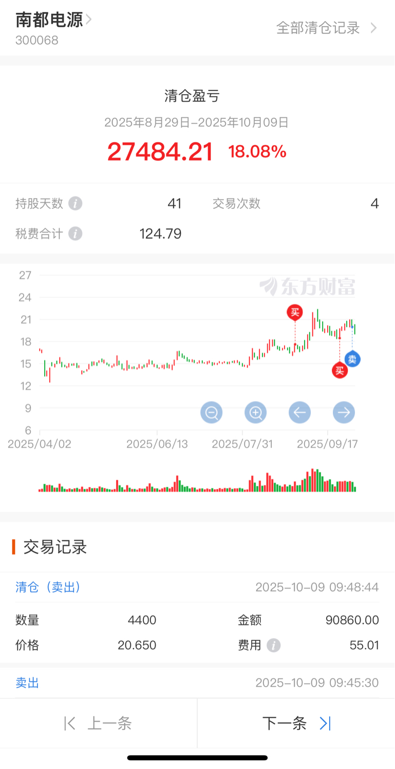 $南都电源(SZ300068)$ 误打误撞,昨天清仓的时间刚刚好