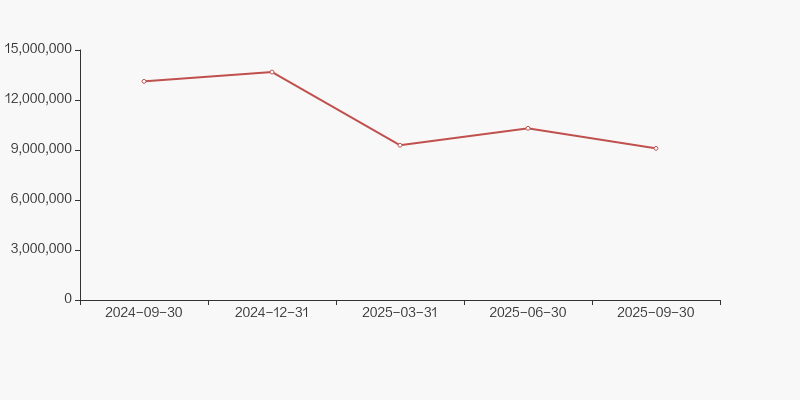 截至2025年9月30日,公司最新总股本为8.98亿股,其中流通股本为8.53亿股。户均持有流通股数量由上期的6968股上升至7414股,户均流通市值15.28万元。