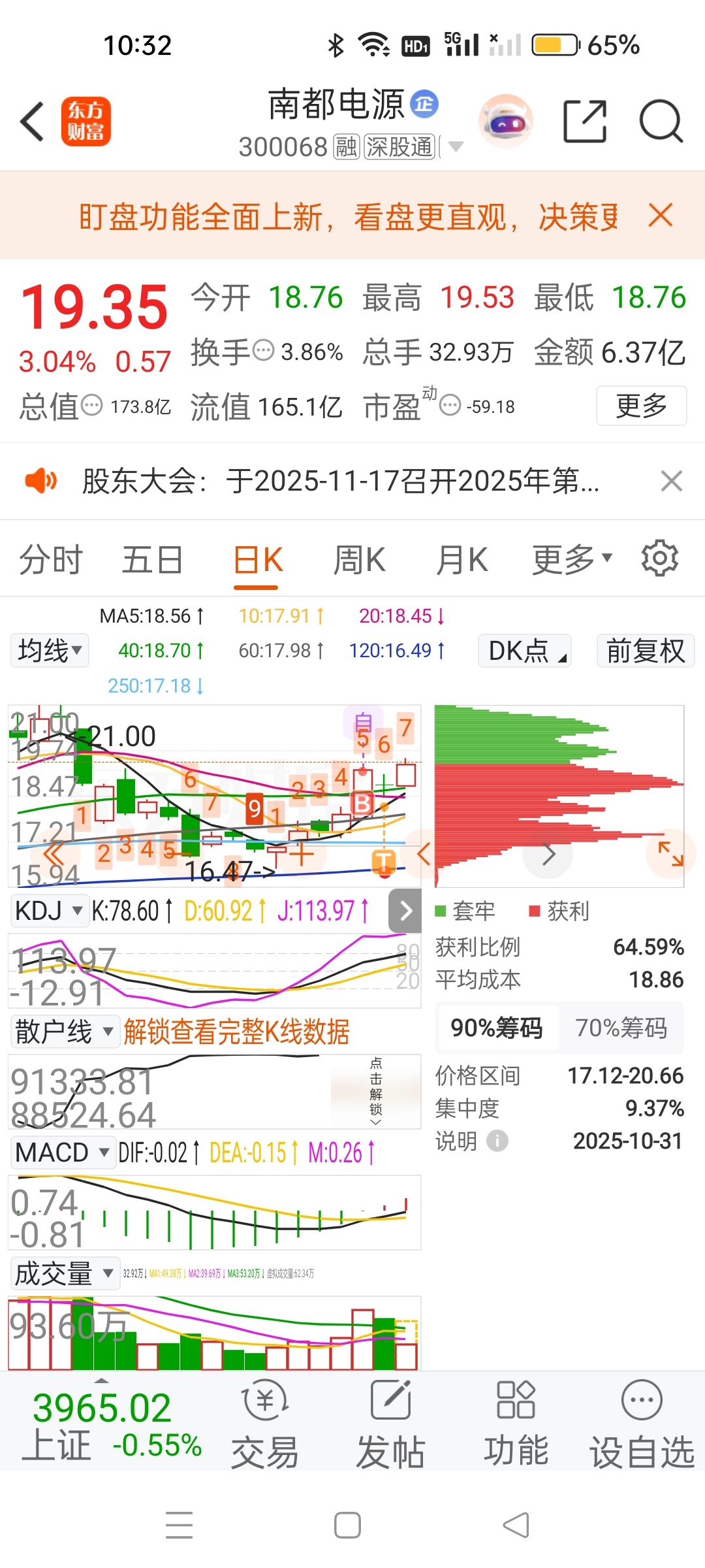 $南都电源(SZ300068)$ 昨天尾盘买的,随时都有进套的风险,要不要卖呢?