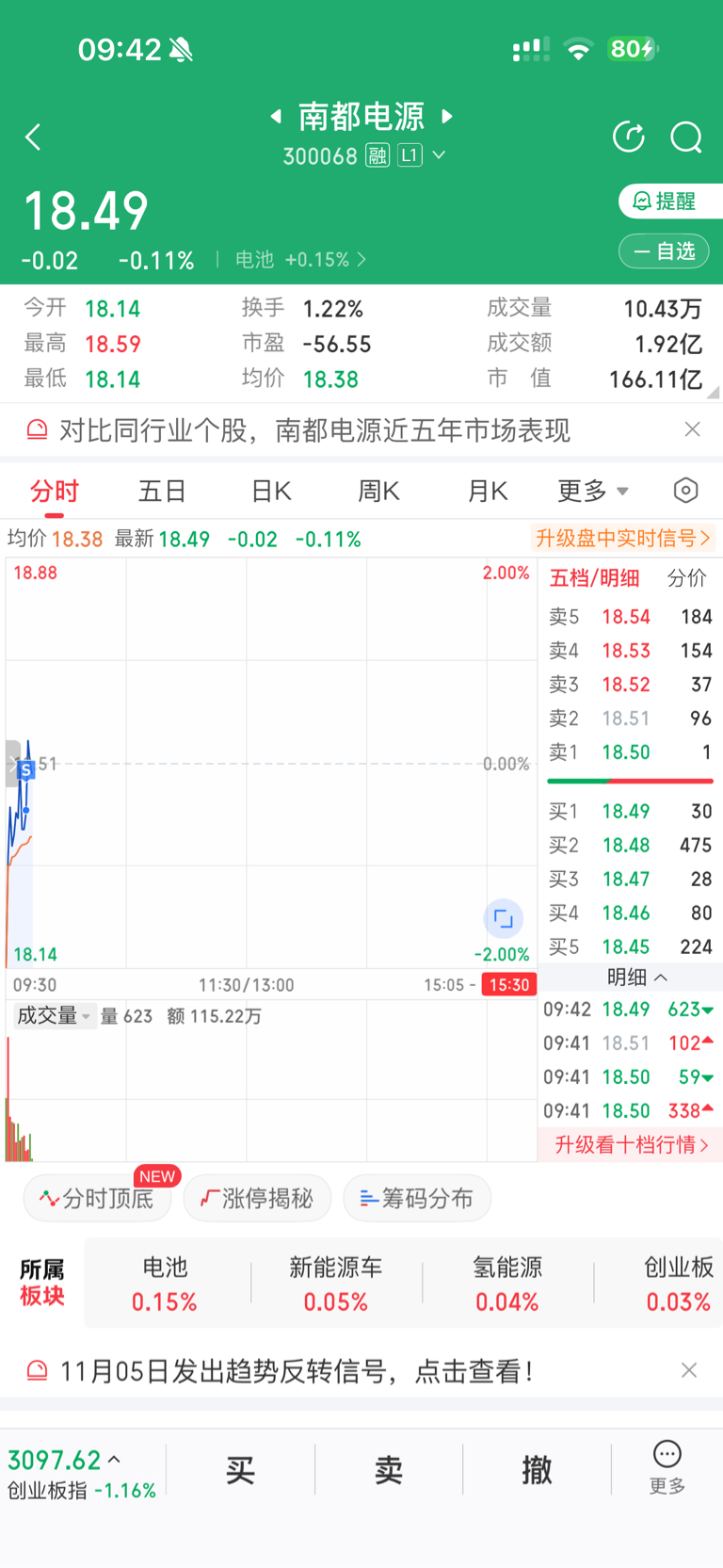 $南都电源(SZ300068)$ 我卖了,祝你们发财了,主力,往上干吧