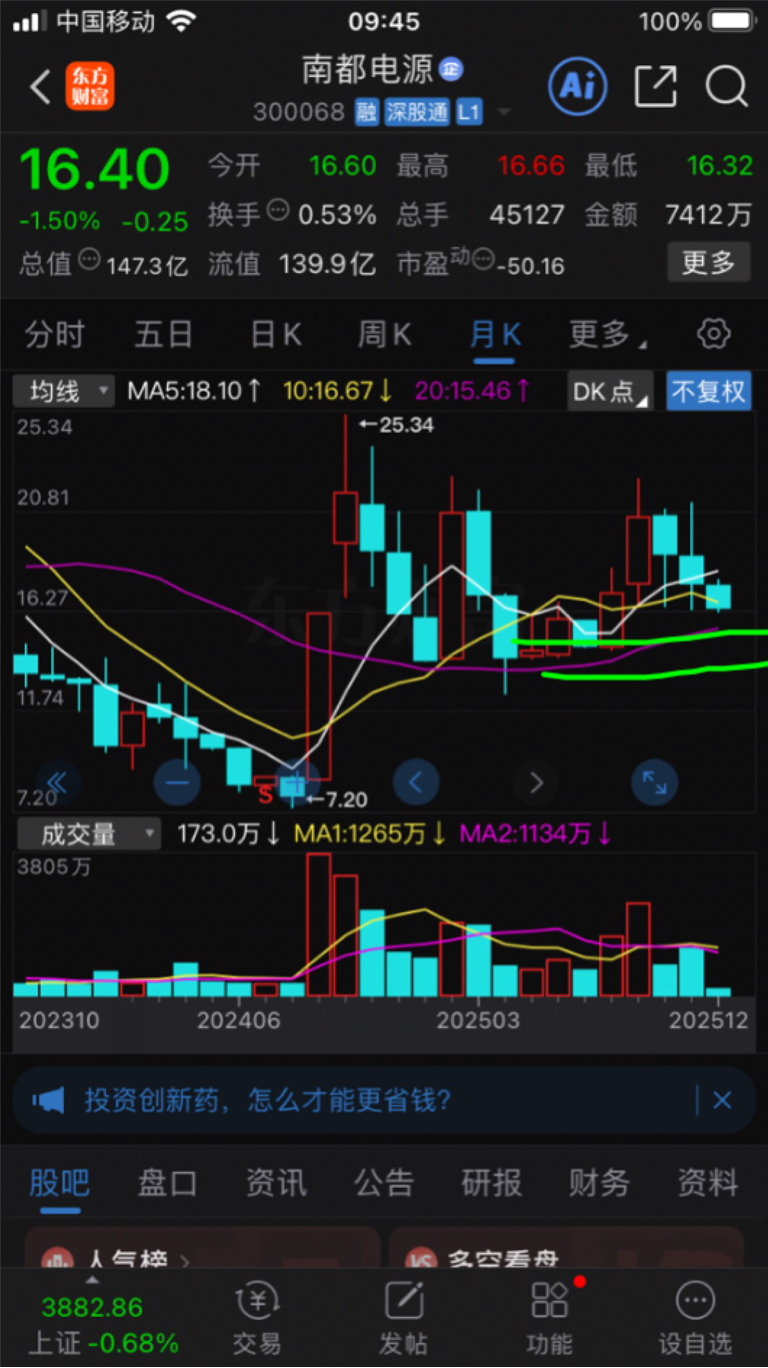 $南都电源(SZ300068)$ 15.5绝对会去碰下的!