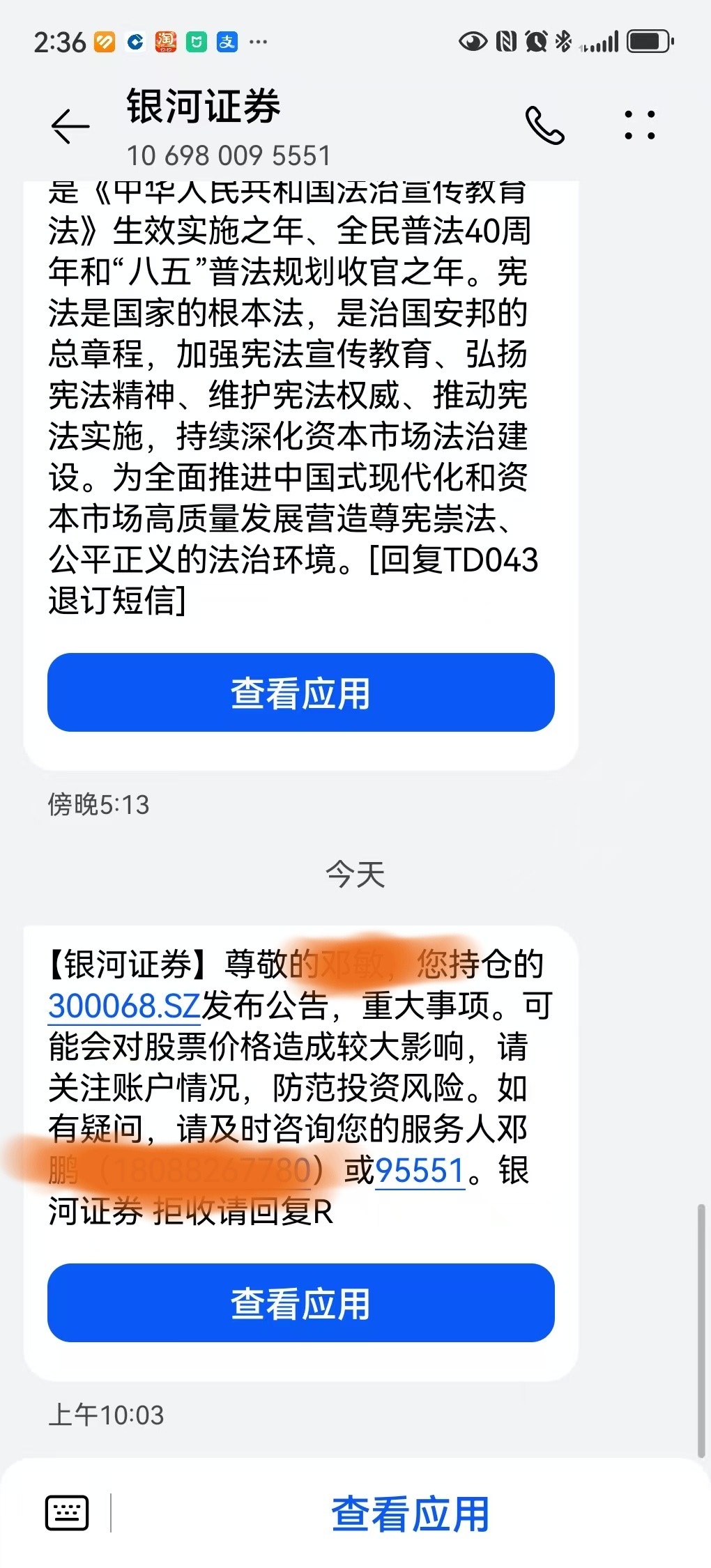 不但发了信息还打了电话口头告知,希望是虚惊一场