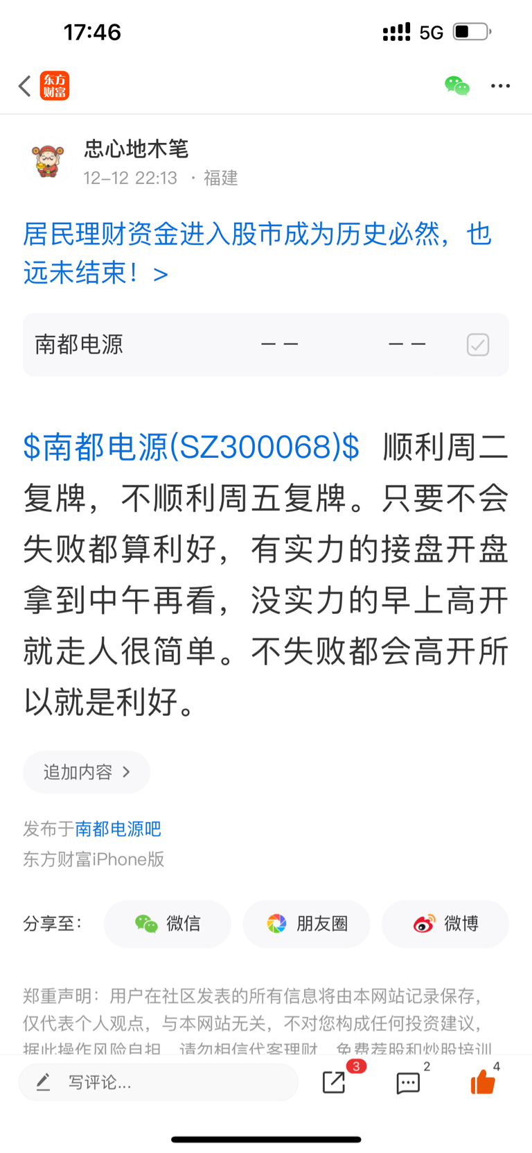 $南都电源(SZ300068)$ 继续停牌走起,周五高开看情况再决定。这几天市场不好能高开就已经算利好了。所以没什么几个涨停啊都不要做梦,免得睡不着