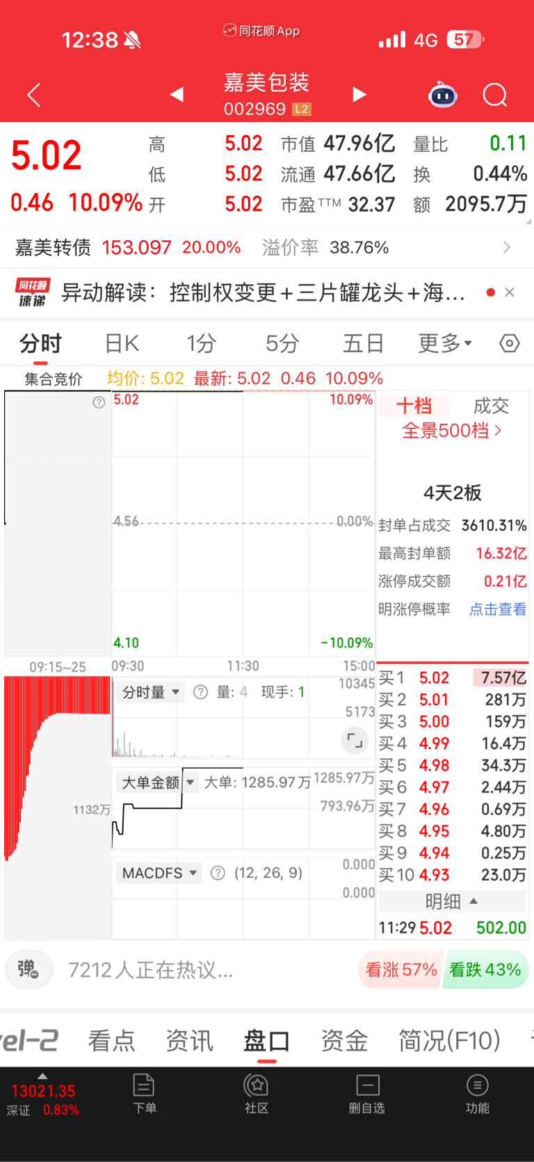 这个说不准,近期有几个筹划变更控制权的,复盘一字板涨停,有换手板,有冲高回落的,
