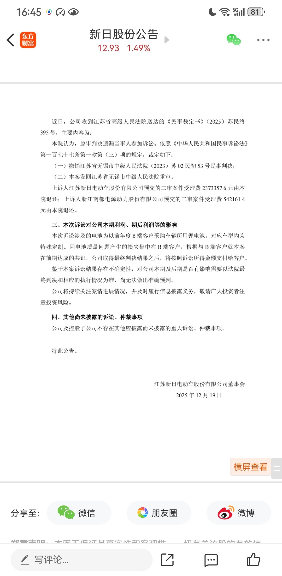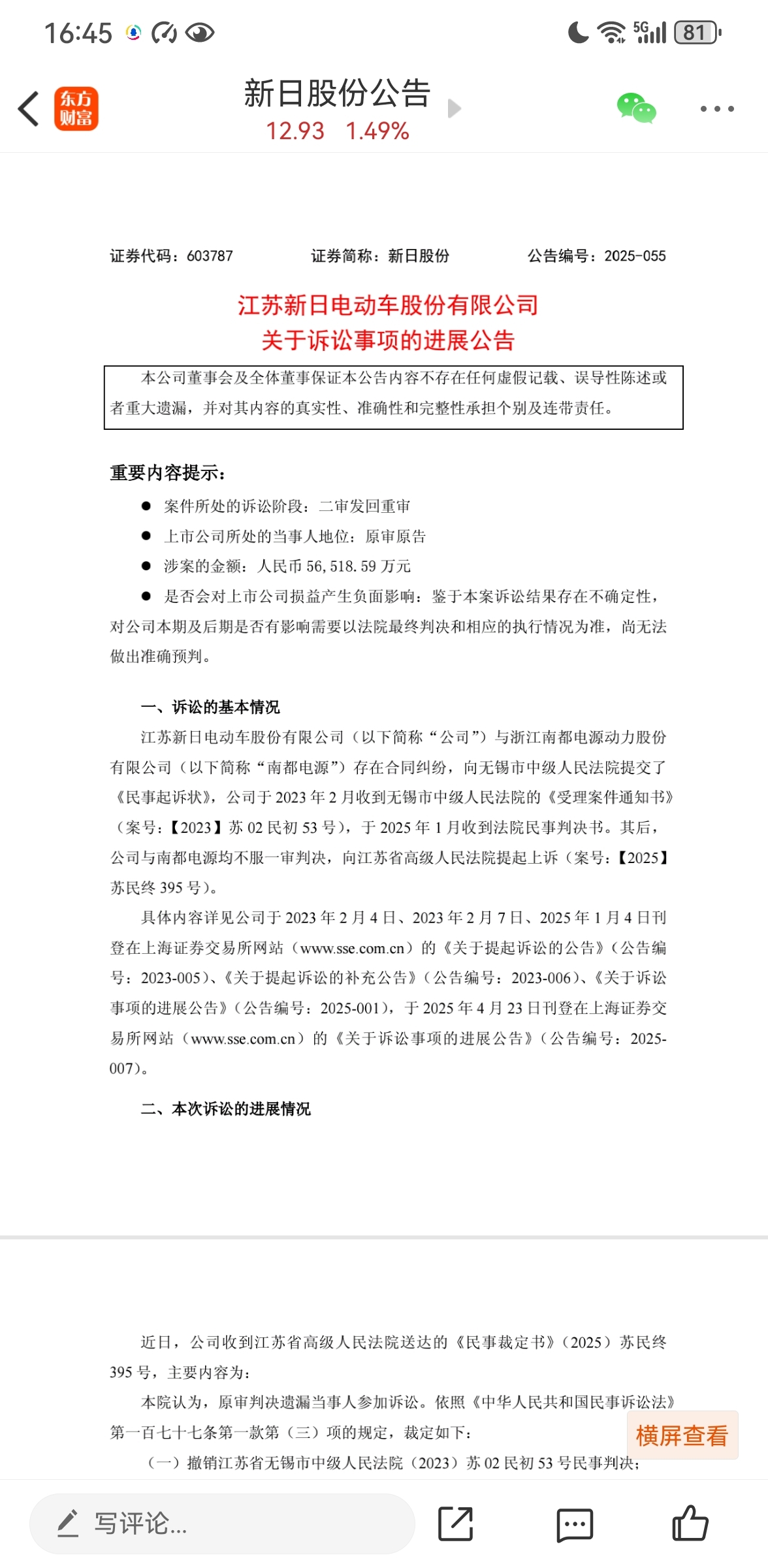 $南都电源(SZ300068)$ 日新发诉讼公告了