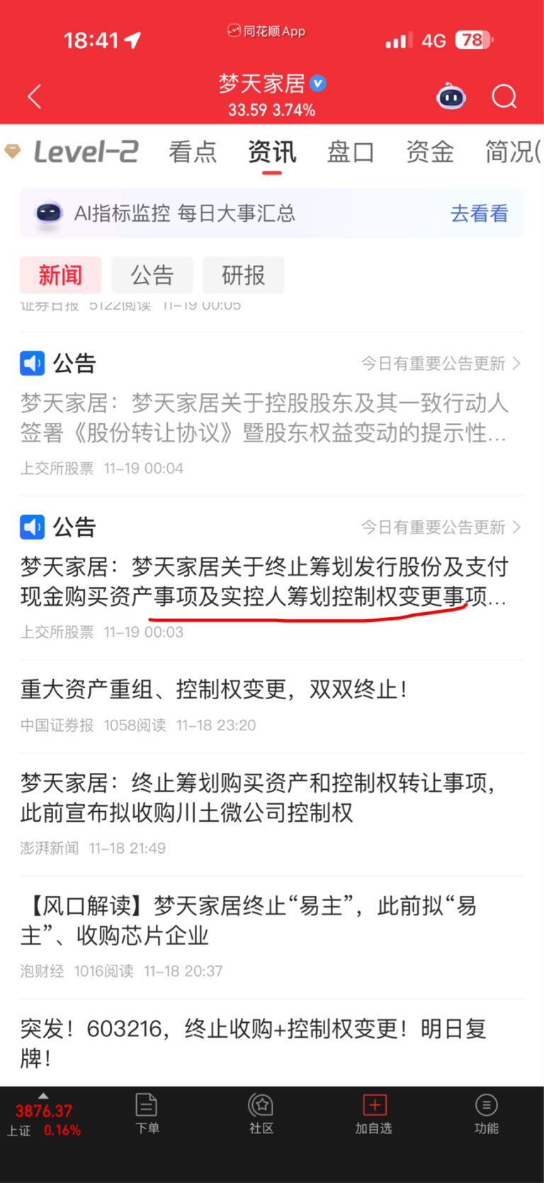 梦天家具11月18日公告终止筹划控制权,11月19日过后还连续一字板,这个是回事