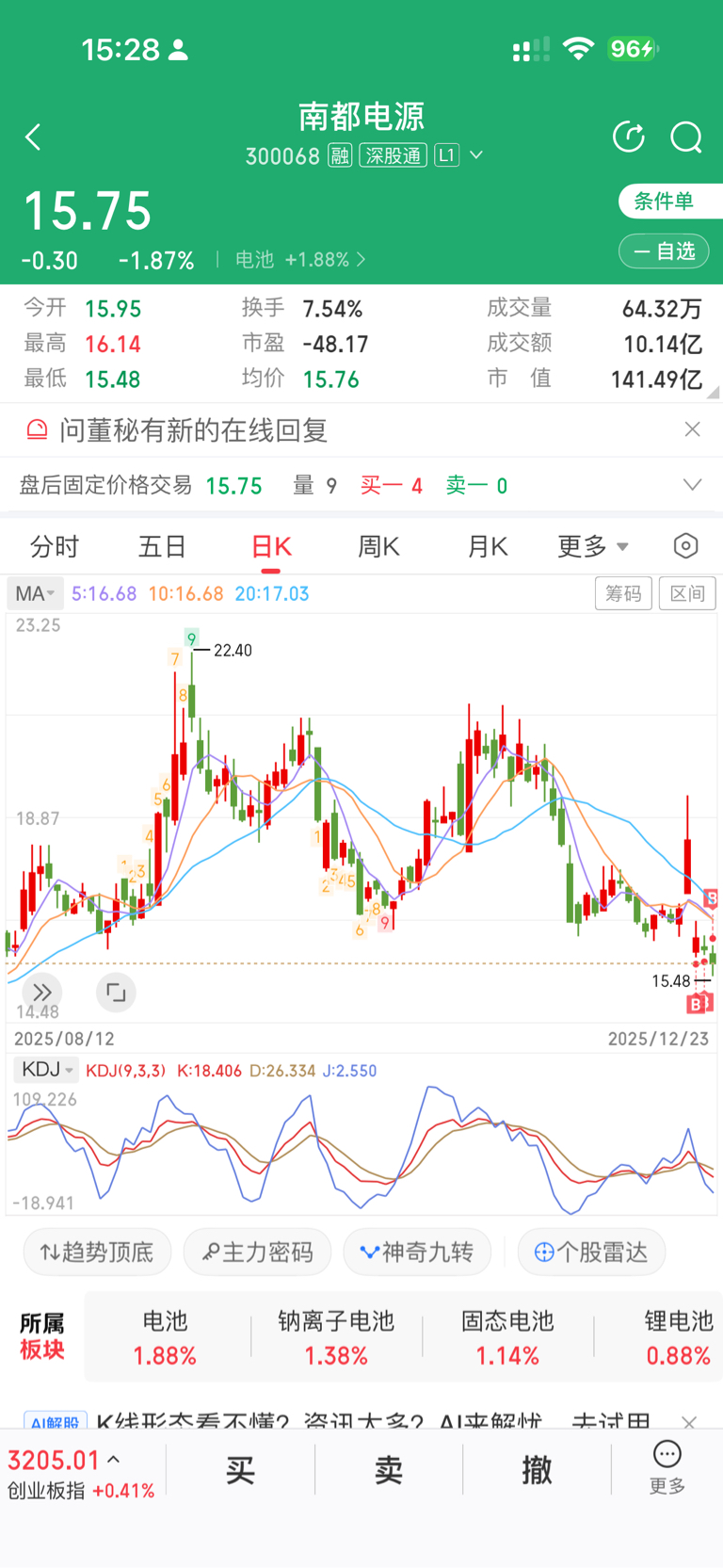 $南都电源(SZ300068)$ 我抄了 3 次底,明天 20cm