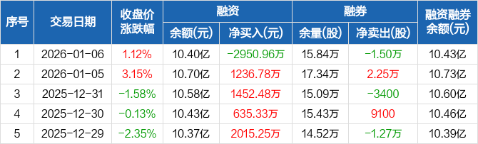 南都电源:融资净偿还2950.96万元,融资余额10.4亿元(01-06)