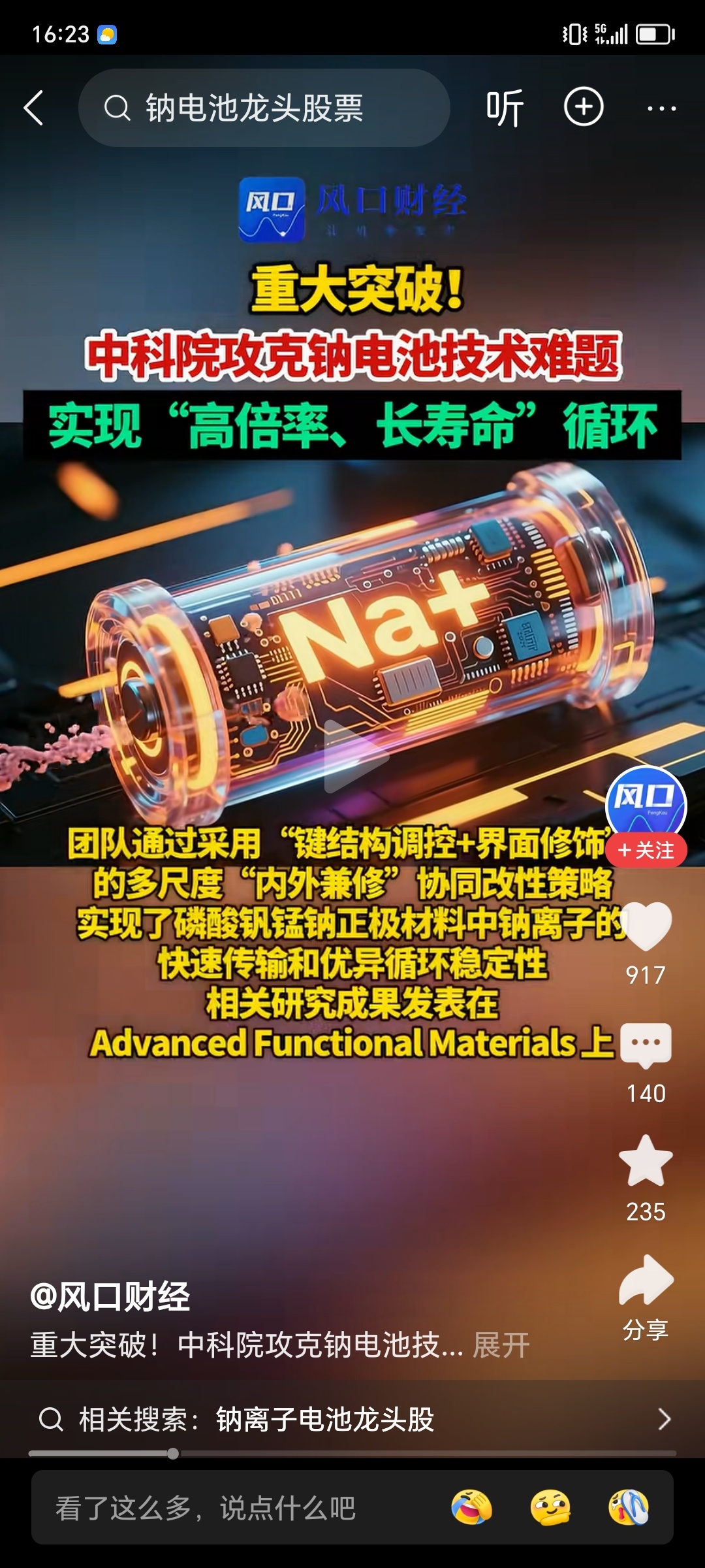 今天好失望,好失望,钠电池有好消息了,明天赏点肉吃呗?