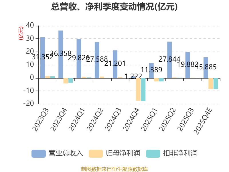 1、受阶段性资金压力影响,公司产品交付进度未达预期,相关业务利润贡献不足,直接影响单季度盈利表现。2、回收板块铅回收受市场供需关系及相关政策变化影响亏损进一步加大;锂回收业务板块竞争激烈,加之原材料价格波动叠加订单签约与交付的时间错配,导致当期亏损,加剧单季度业绩压力。3、民用锂电产线投产爬坡期生产的批次产品在四季度更换,加大本期亏损。4、应收账款余额增加及账龄结构变化,整体坏账损失计提增加,对单季度业绩造成显著负面影响。针对上述问题,公司已启动多项应对举措,重点推进资金纾解、加快产品交付、强化应收账款管理及业务运营优化,多措并举推动经营业绩逐步改善。
