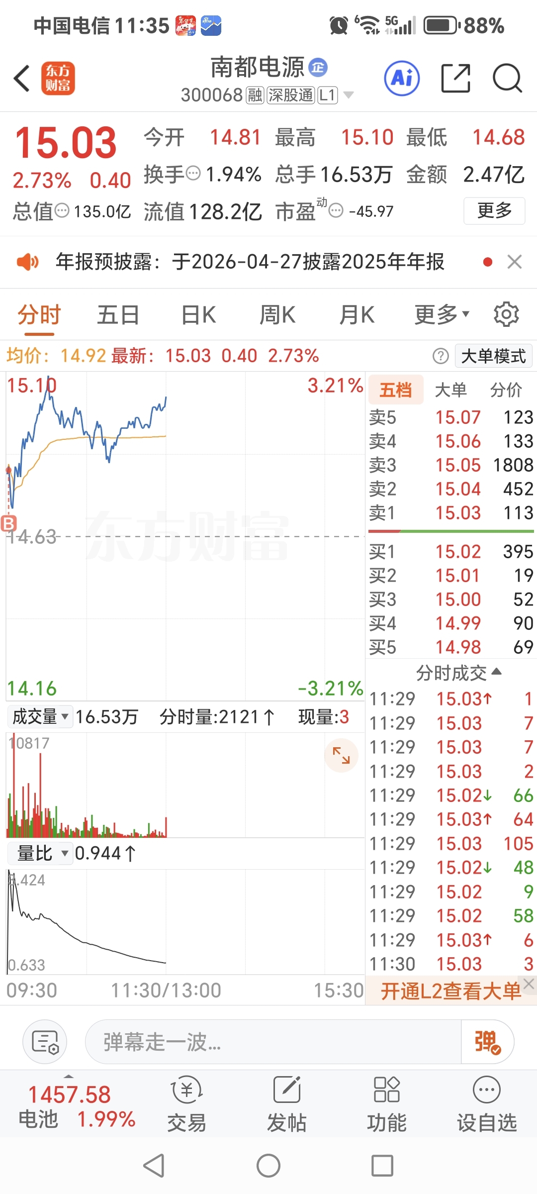 $南都电源(SZ300068)$ 今天又继续加仓了,反正天天加,14南都从没怕过