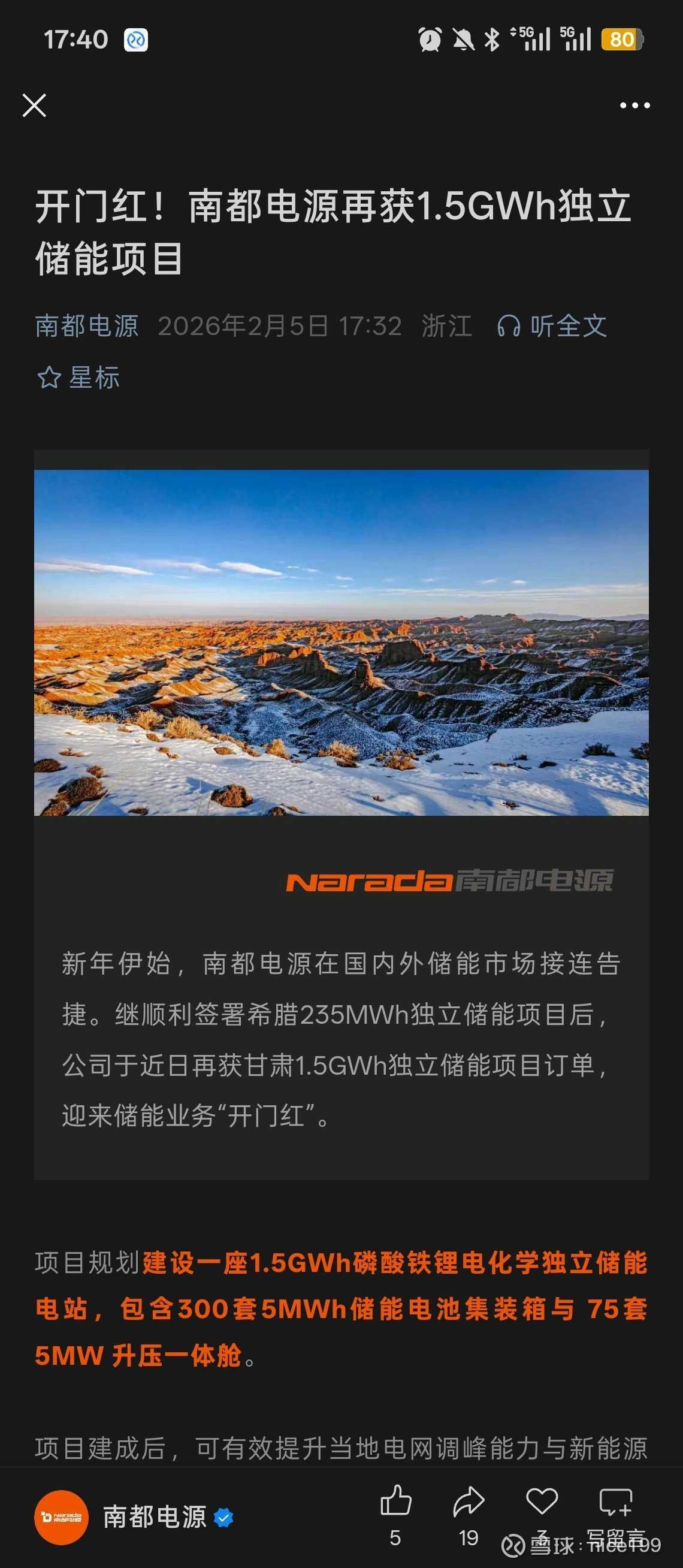 $南都电源(SZ300068)$ 开门红,新接1.5gw储能项目