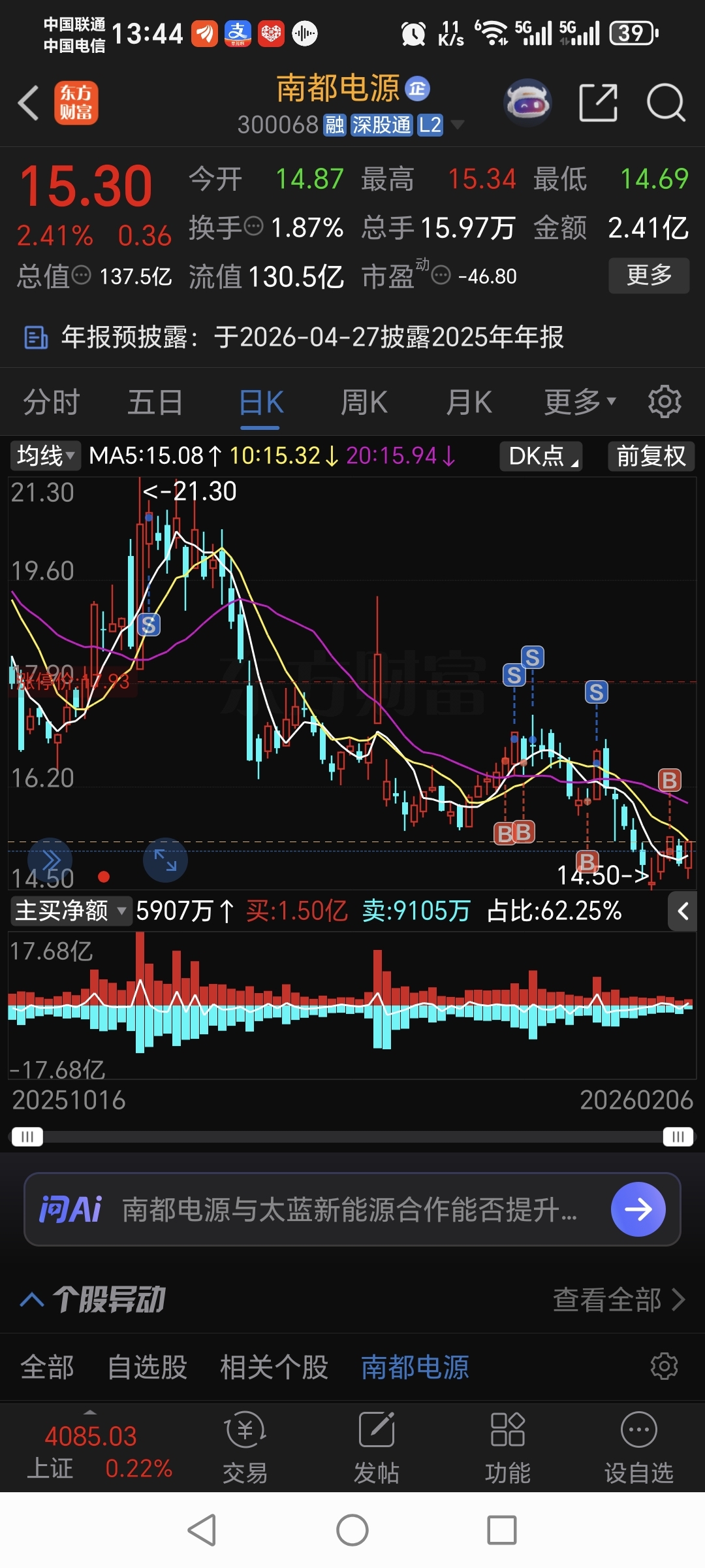 $南都电源(SZ300068)$ 同志们,我又来了,每次买了就涨,跑了就跌