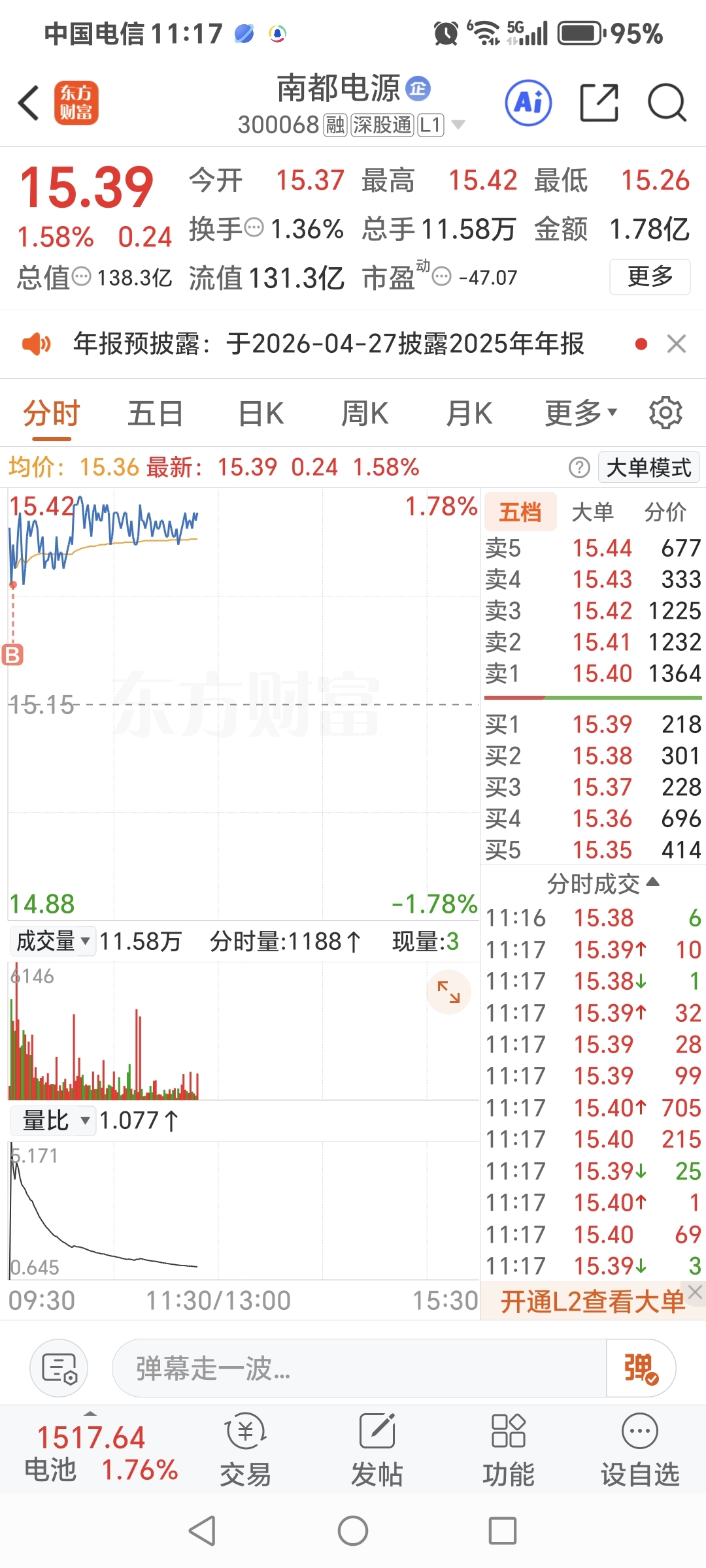 $南都电源(SZ300068)$ 高开这么多,你叫我今天怎么样加仓呀