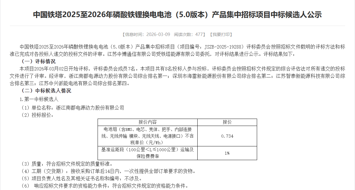 经评审,浙江南都电源动力股份有限公司综合排名第一;